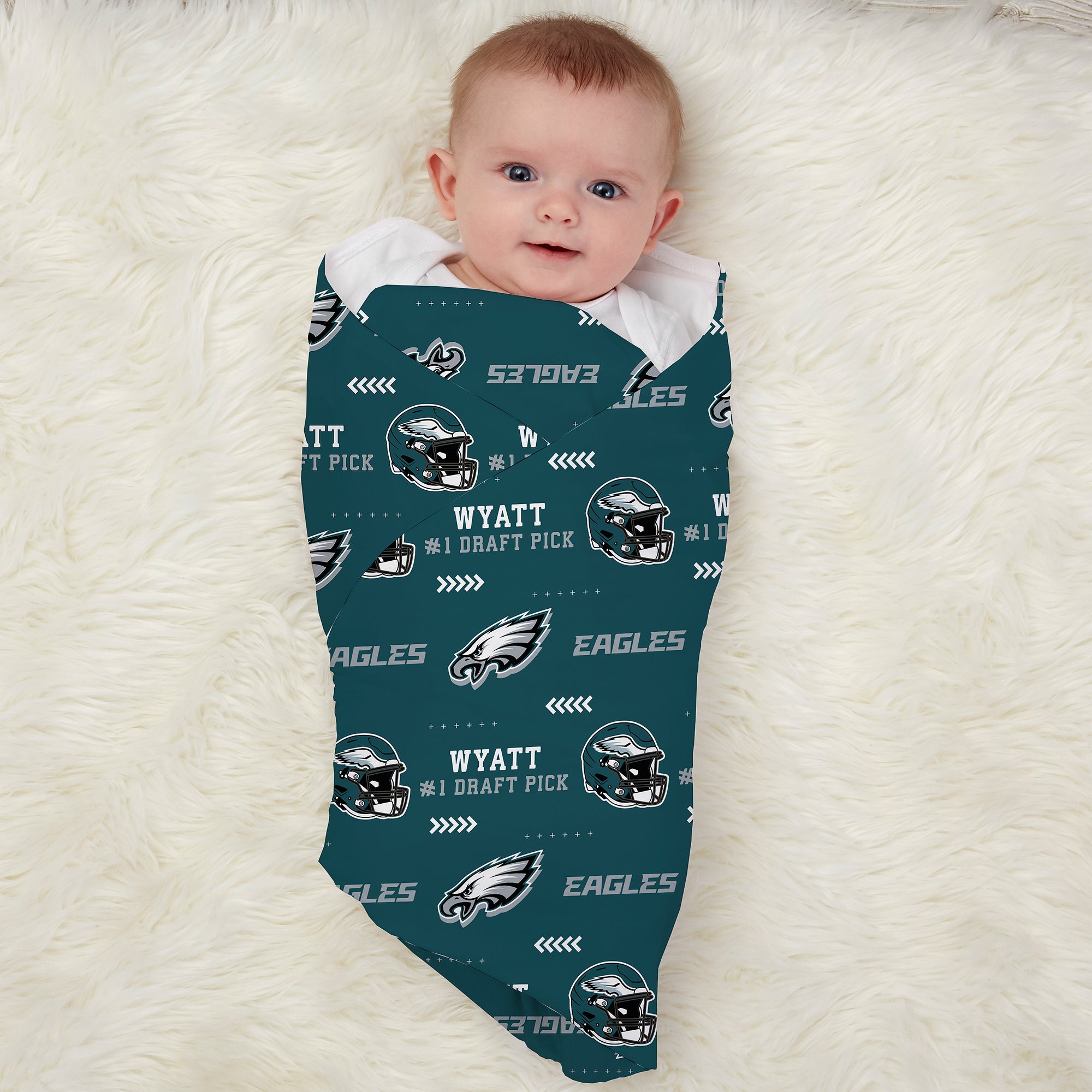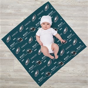 Create a special gift for baby showers or welcoming home a new baby with NFL Philadelphia Eagles Personalized Receiving Blanket or our Hat and Receiving Blanket Set.