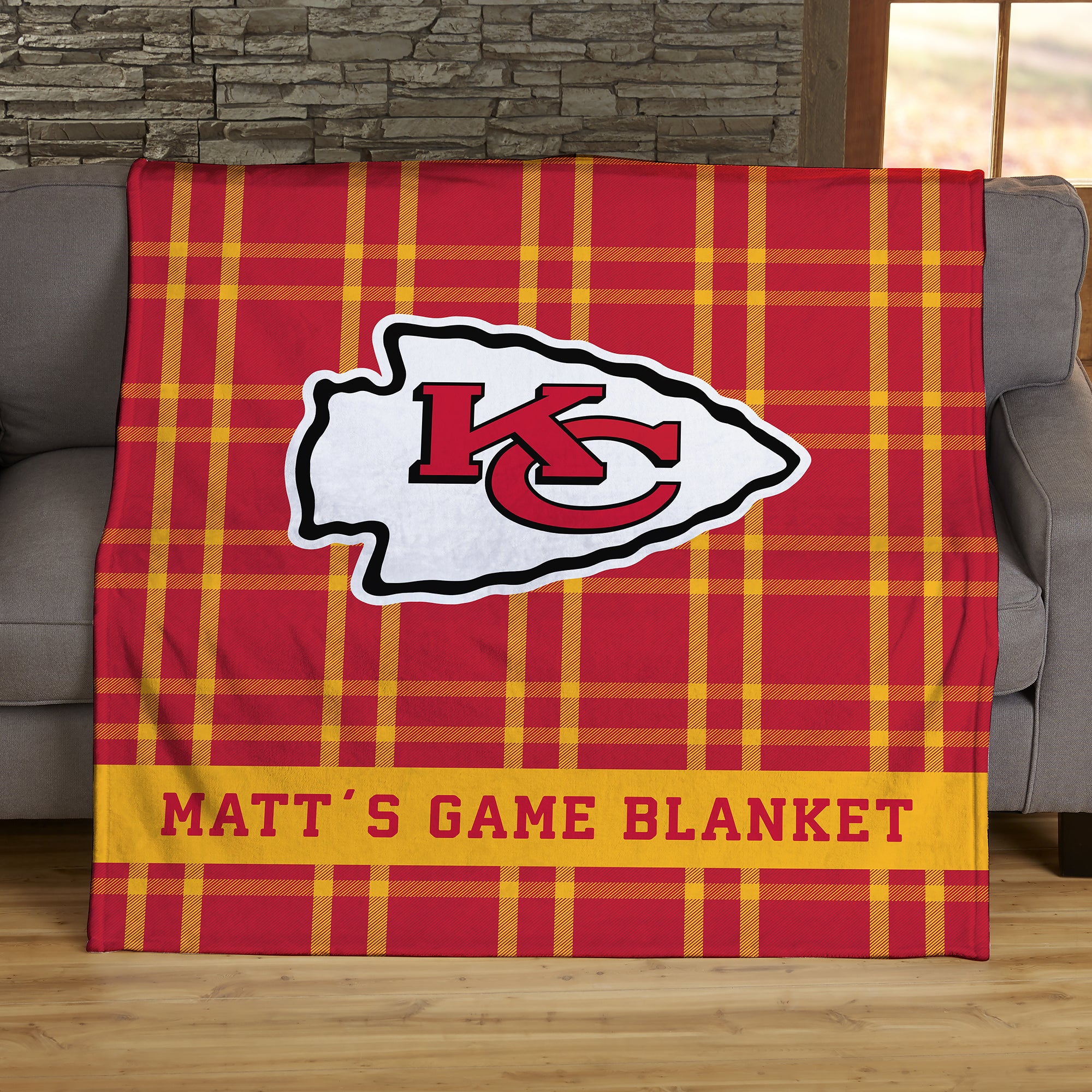 Cheer on your favorite team day or night with the NFL Plaid Pattern Kansas City Chiefs Personalized Blankets. The stylish plaid pattern with your favorite team's logo, customized for you, will be a favorite on a game day. Perfect to pack for tailgates too!