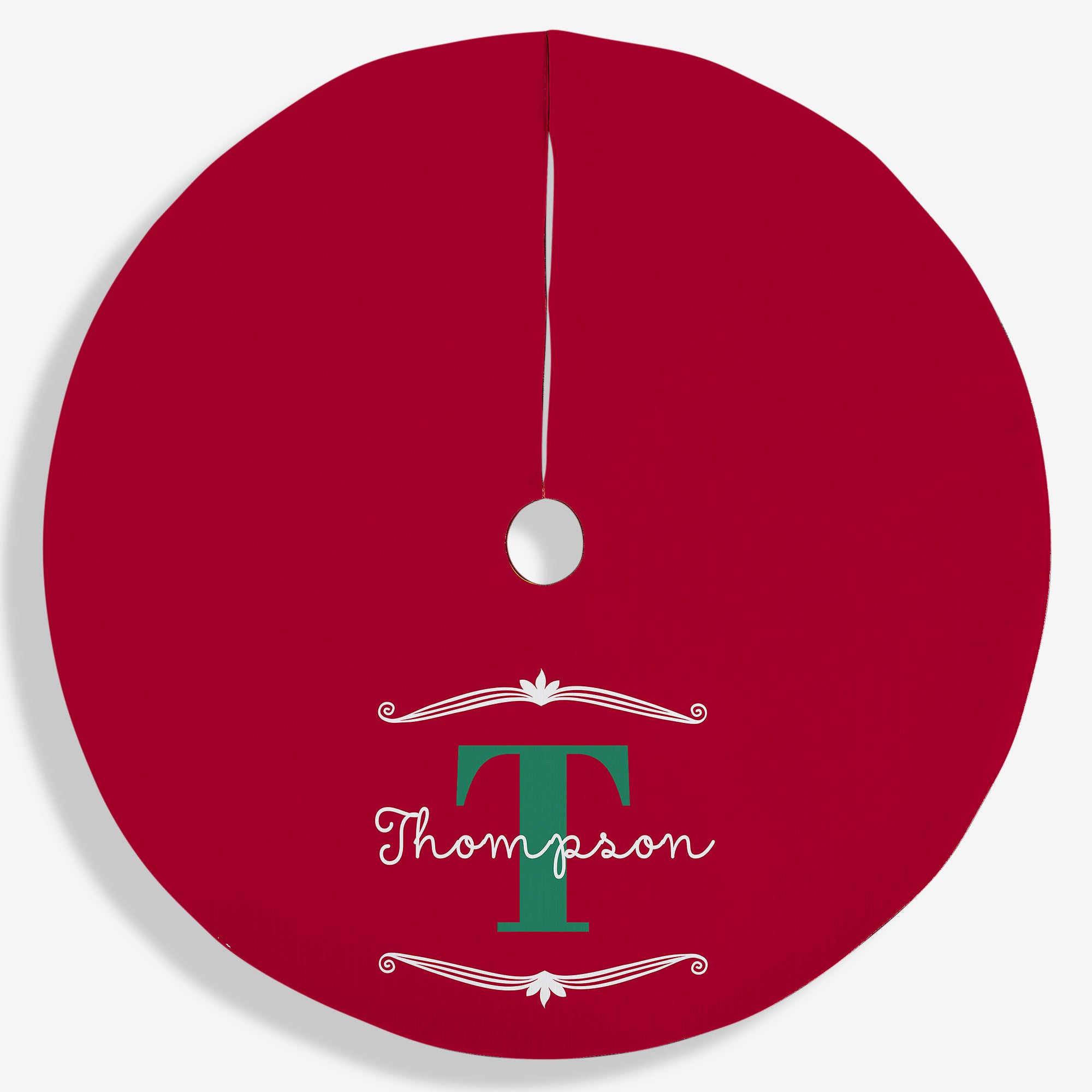 • Personalize the tree skirt with any name in your choice of block or script font