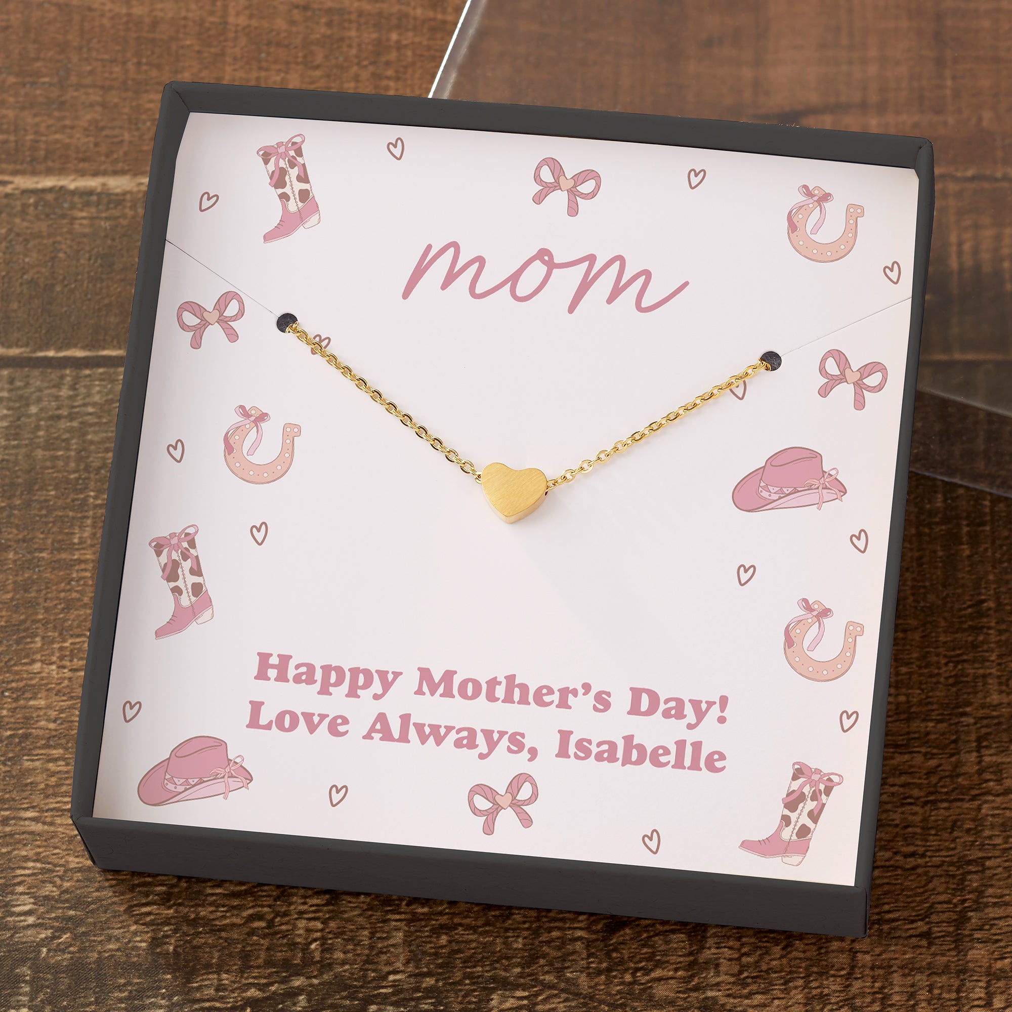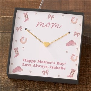Celebrate any upcoming celebration and make it more special by gifting the Necklace in the printed Western Icons Card Box. This design is great for bridal parties, bachelorettes, and birthdays. Choose from four necklaces, delicately gift boxed and ready for gift giving. Personalize the bottom message to suite any occasion.