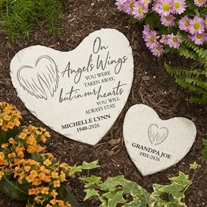 On Angel's Wings Personalized Memorial Heart Garden Stone