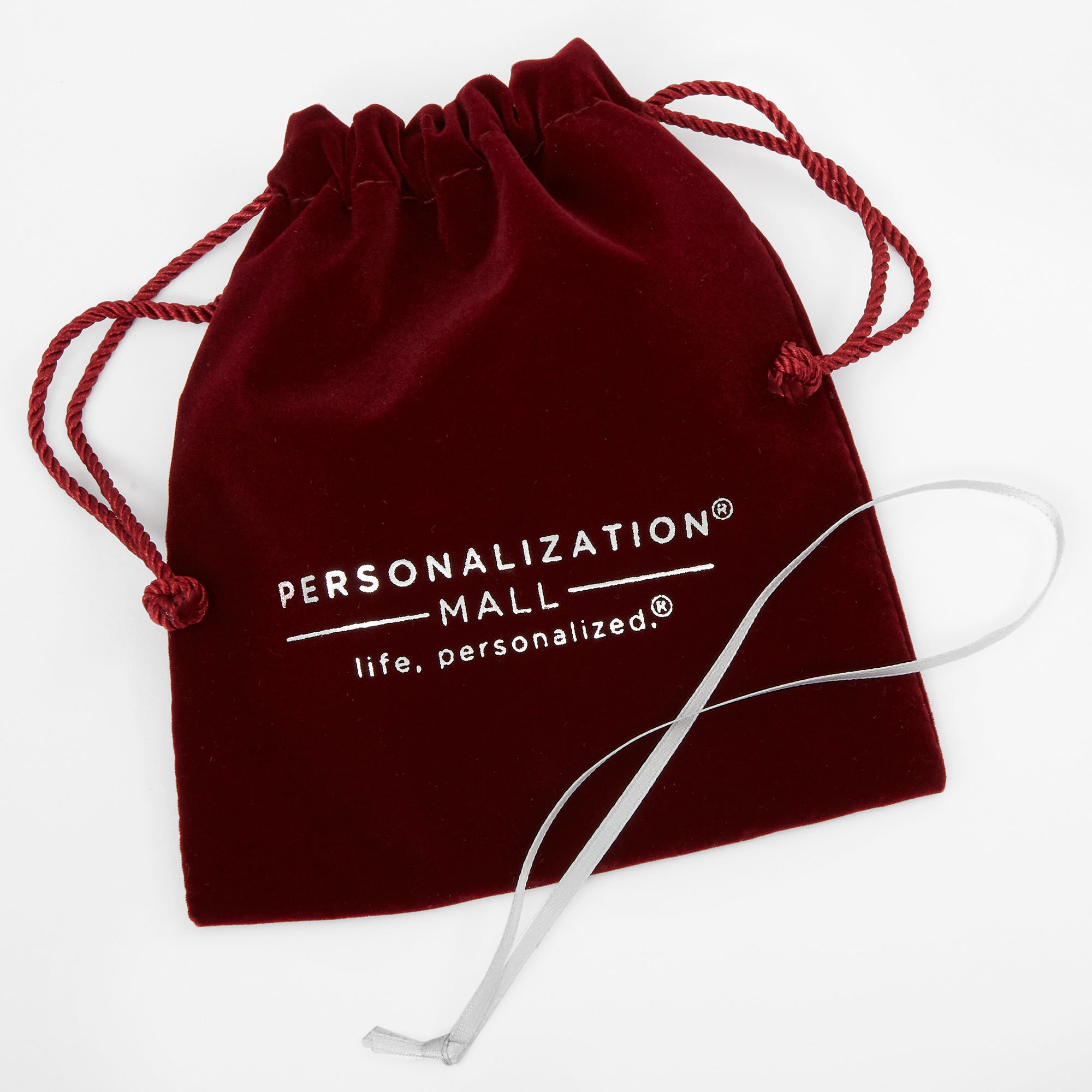 - Add our burgundy velvet pouch with drawstring closure to protect and store your personalized keepsake ornament.