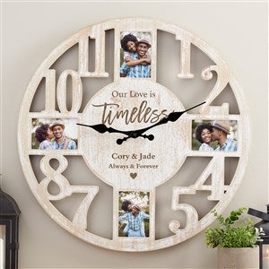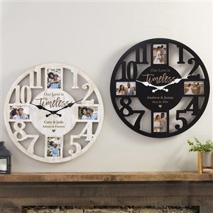 The Our Love Is Timeless Personalized Picture Frame Wall Clock makes a unique gift for the happy couple. Adding your own favorite pictures gives each clock its own personal style.