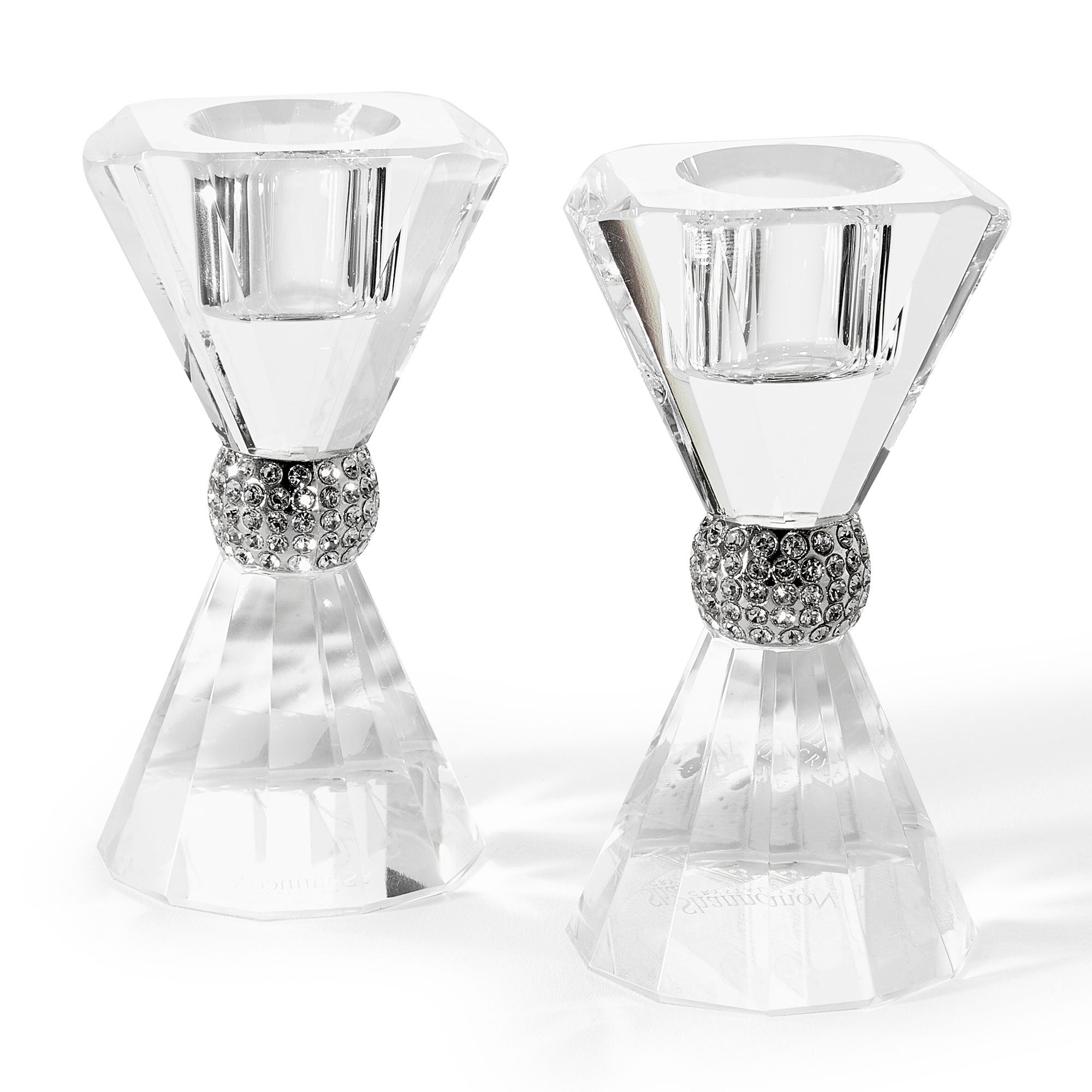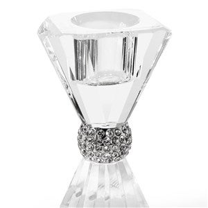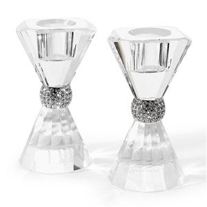 - Faceted tapered candle holder pair with jeweled accents