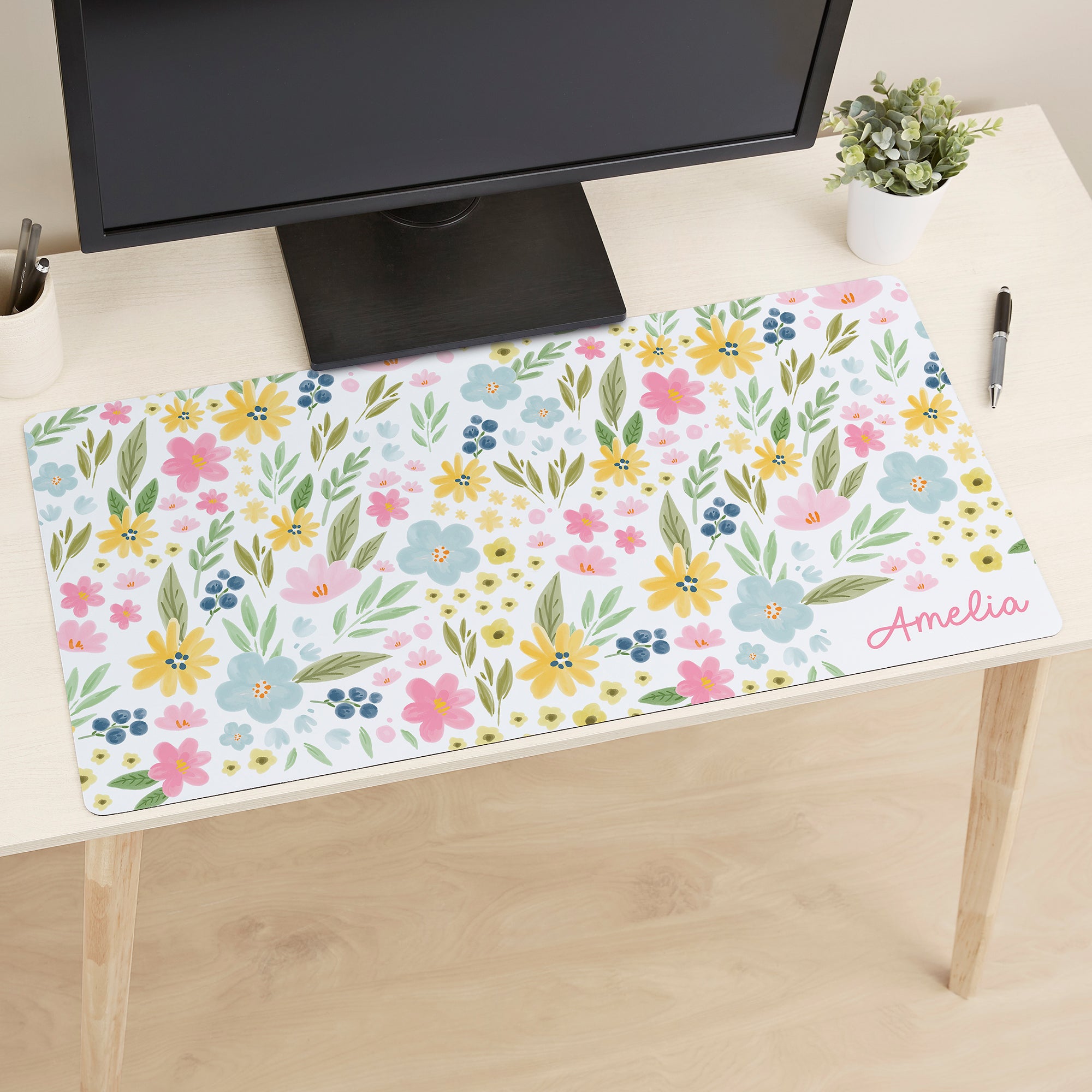 Pastel Flowers Personalized Desk Mat