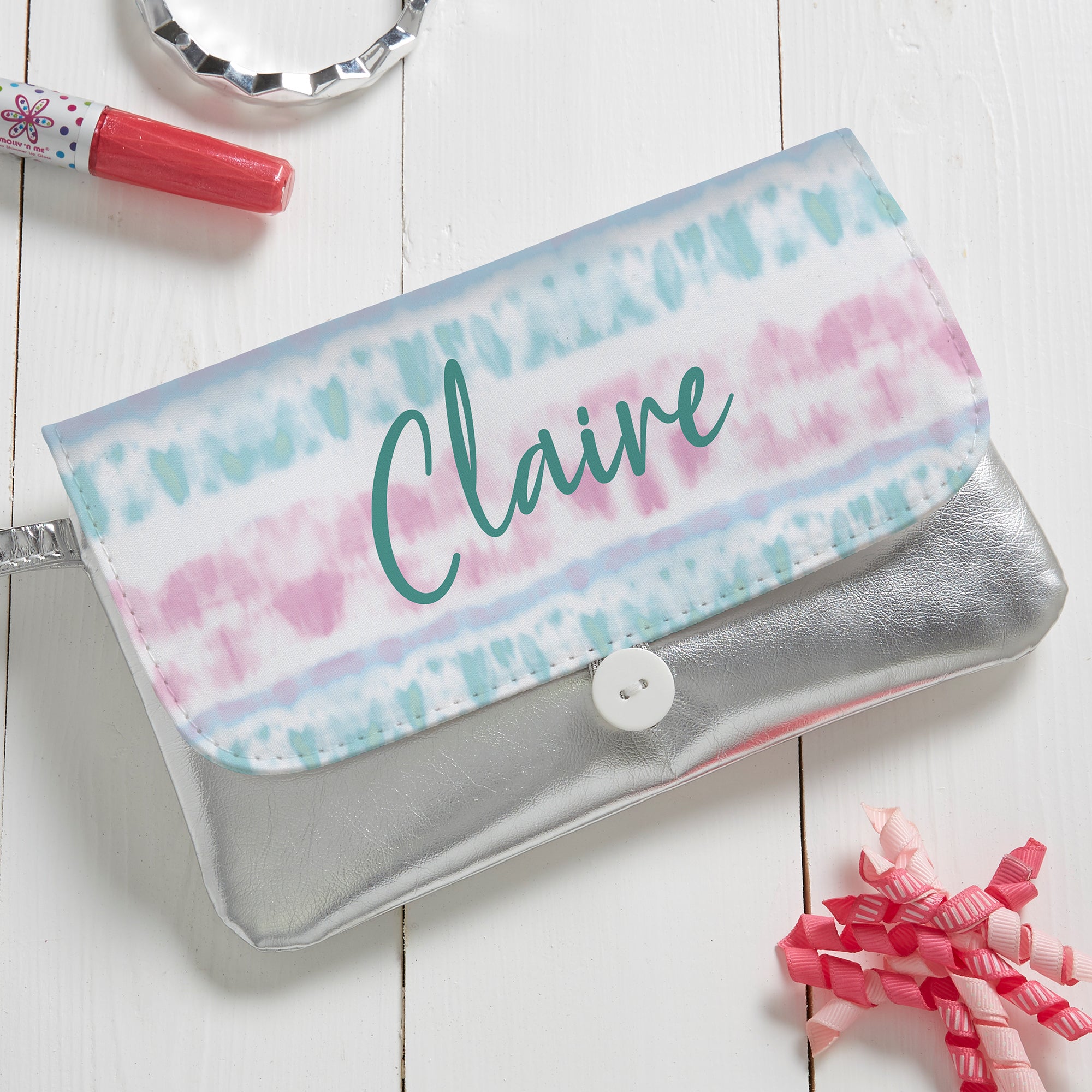 Perfect for touch-ups or to carry along her precious belongings, our Pastel Tie Dye Personalized Wristlet will be her favorite new accessory!