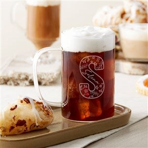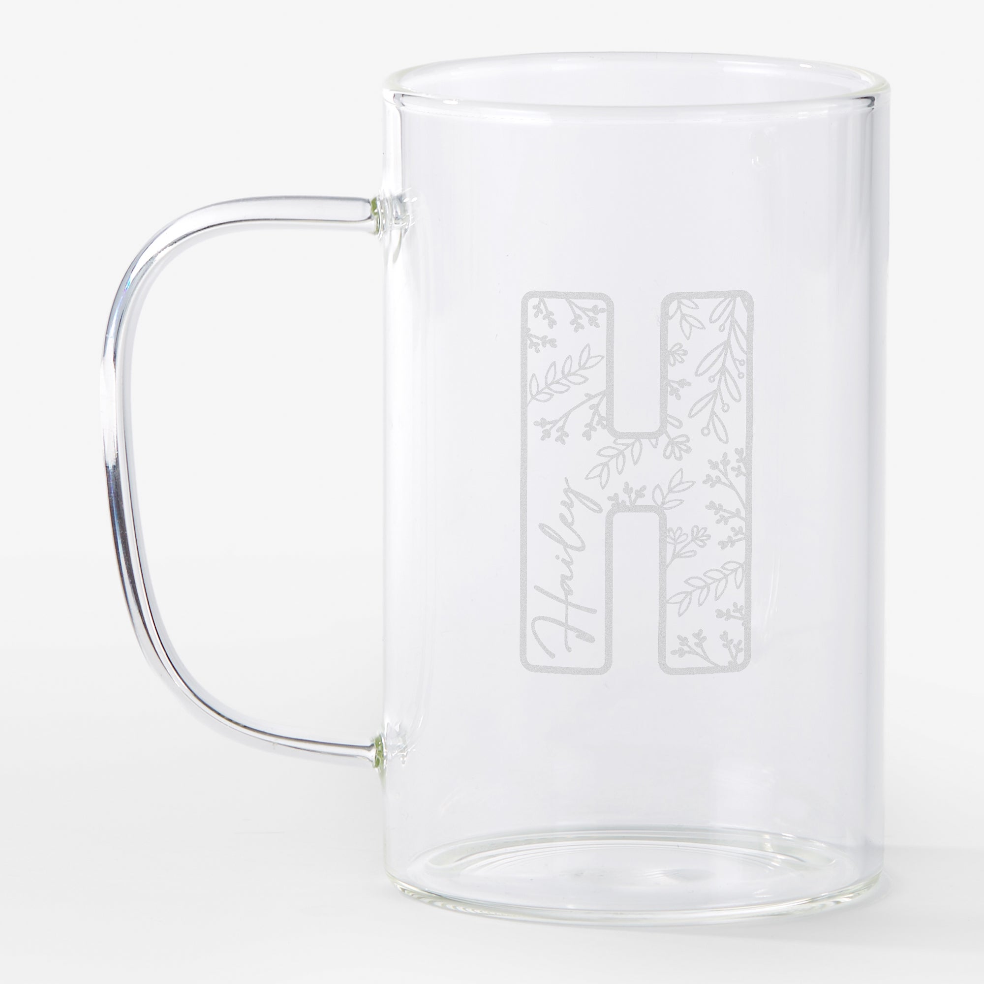 Add a touch of sophistication to your daily routine with the Pattern Initial Engraved Glass Mug. Featuring a bold, patterned initial engraved on crystal-clear glass, this 18oz mug blends style and function effortlessly. Whether you're enjoying your morning coffee or winding down with tea, this personalized piece makes every moment feel special.