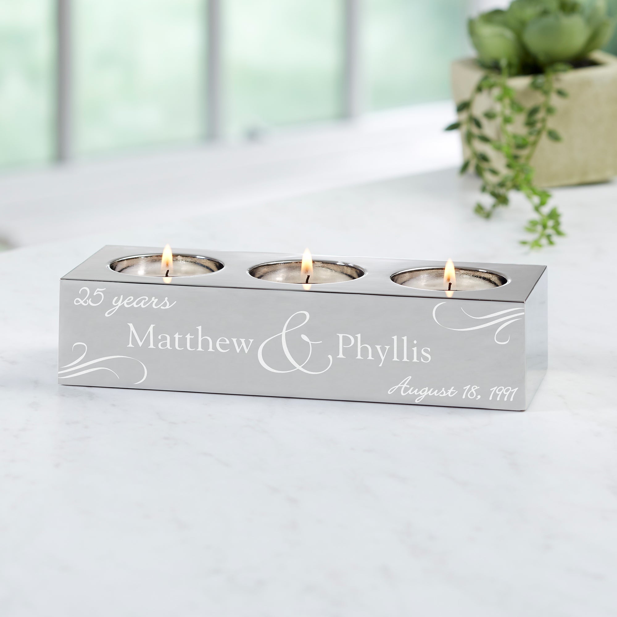 Product Information 15498 - Happy Anniversary Personalized Tea Light Candle Holder