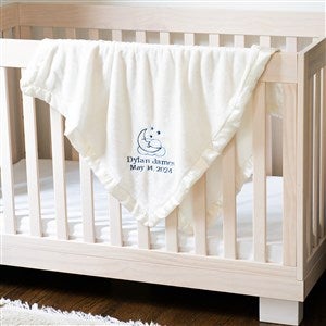 Choose from multiple thread color options for any 3 lines of personalization embroidered below the moon & stars graphic creating a one-of-a-kind blanket they will love to use.