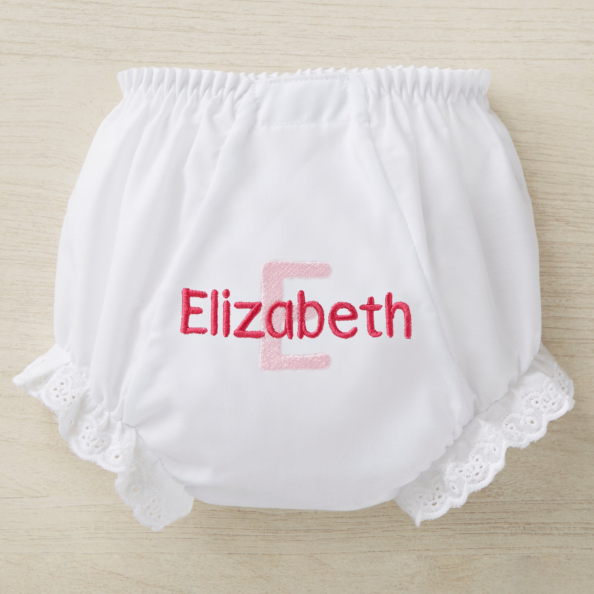 Our Playful Name Embroidered Diaper Cover discretely covers her diaper under her holiday dress in ultimate baby style. Makes the perfect gift for any baby girl!
