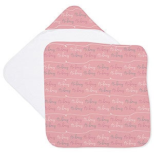 Our Modern Girl Personalized Baby Hooded Towel will soak up all the suds to make your little one warm and dry as quick as possible.