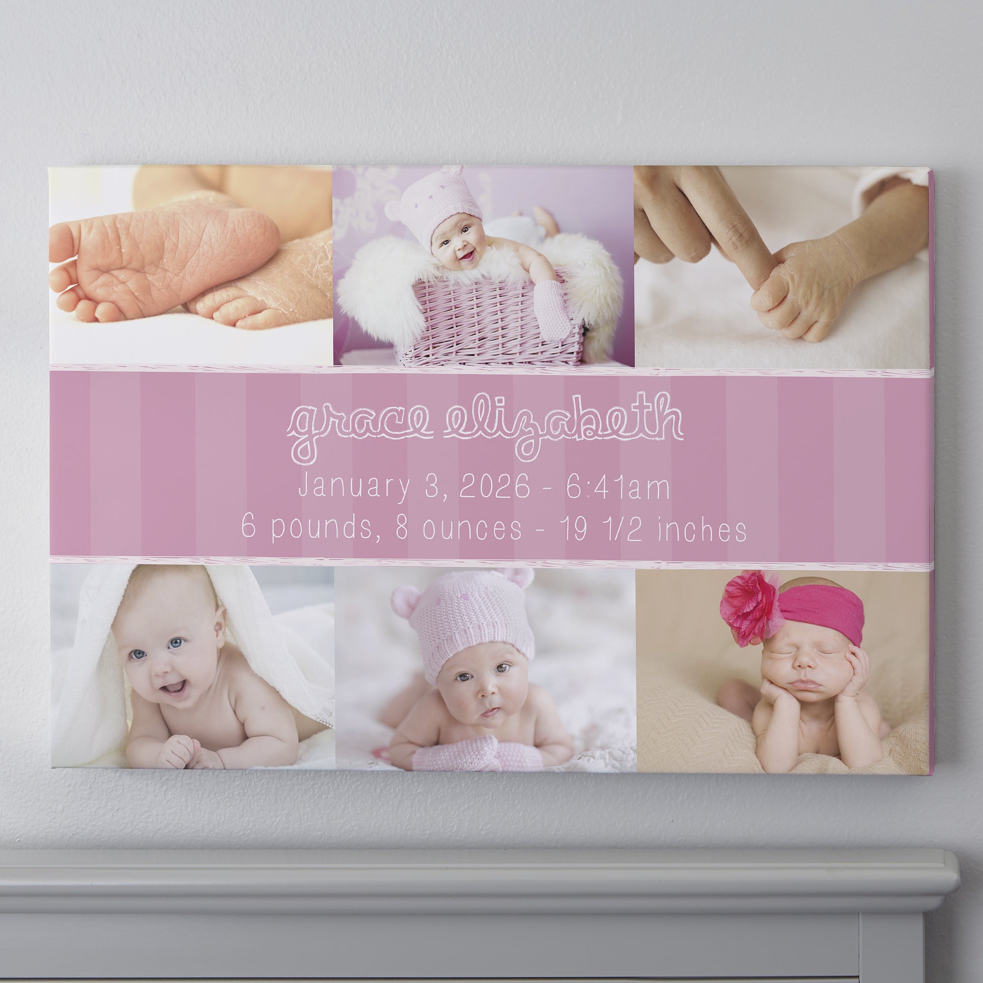 - Personalize with baby's name and all the important birth details or a special message