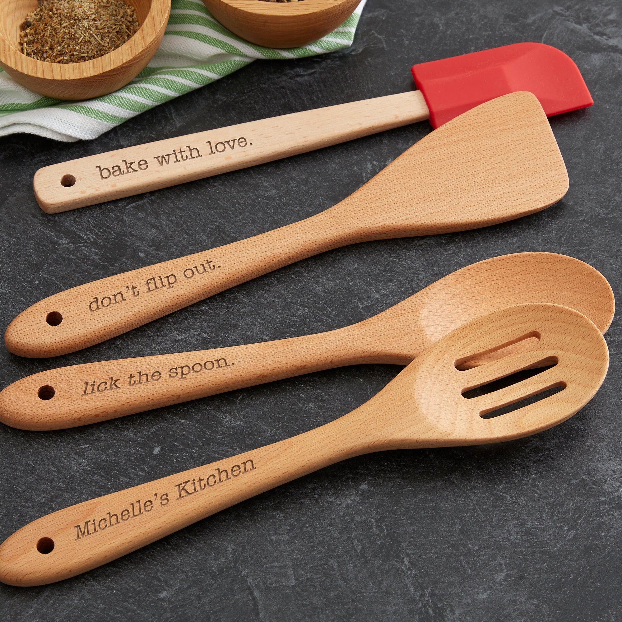 Kitchen Expressions Personalized Beechwood Utensils- 4pc Set
