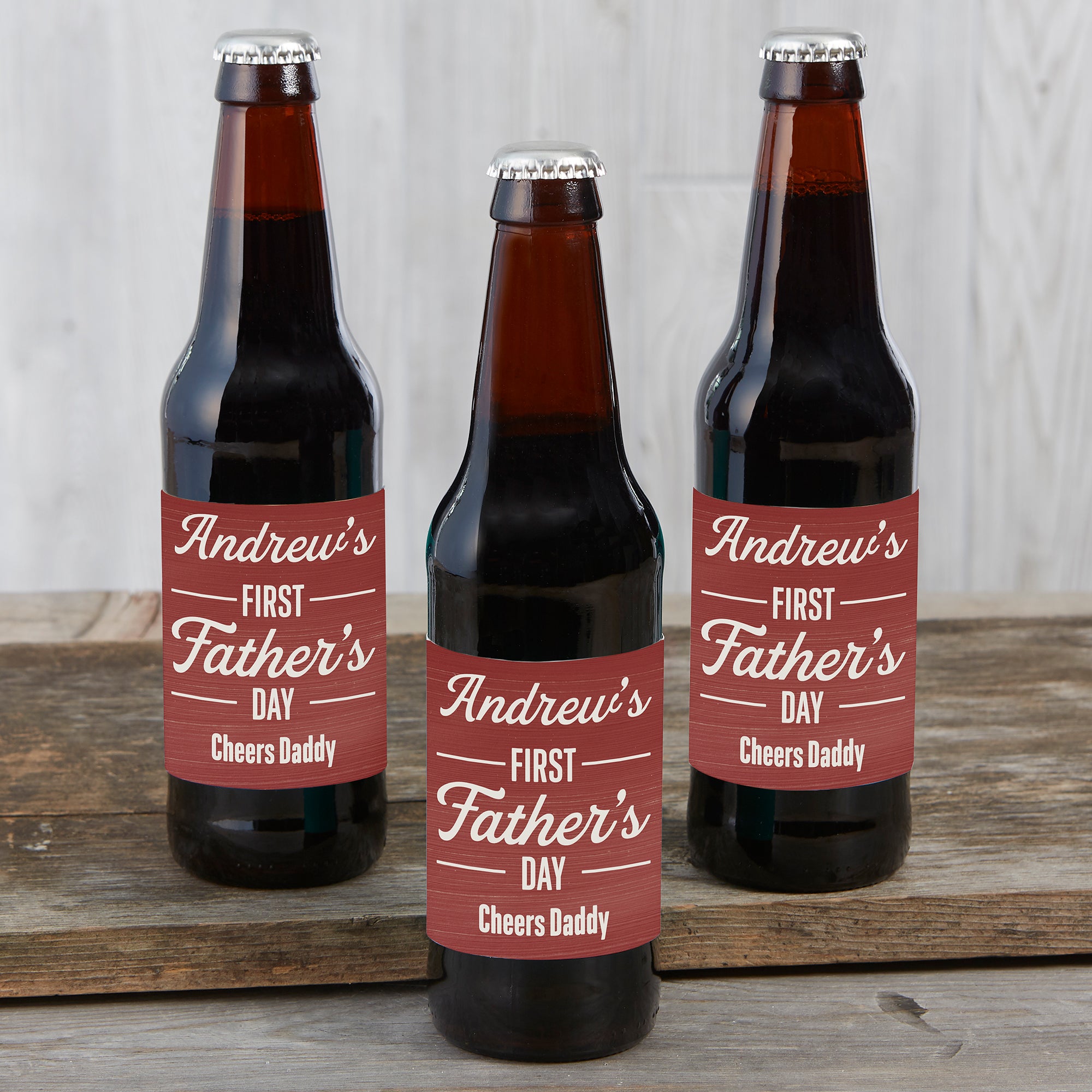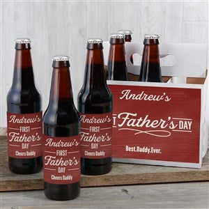 Celebrate the new dad or grandpa in style with the Daddy's First Father's Day Personalized Beer Bottle Labels & Bottle Carrier.