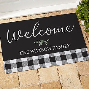 Offer an elegant welcome to friends and family with the Black & White Buffalo Check Personalized Doormats. The modern design is the perfect accent to any home.