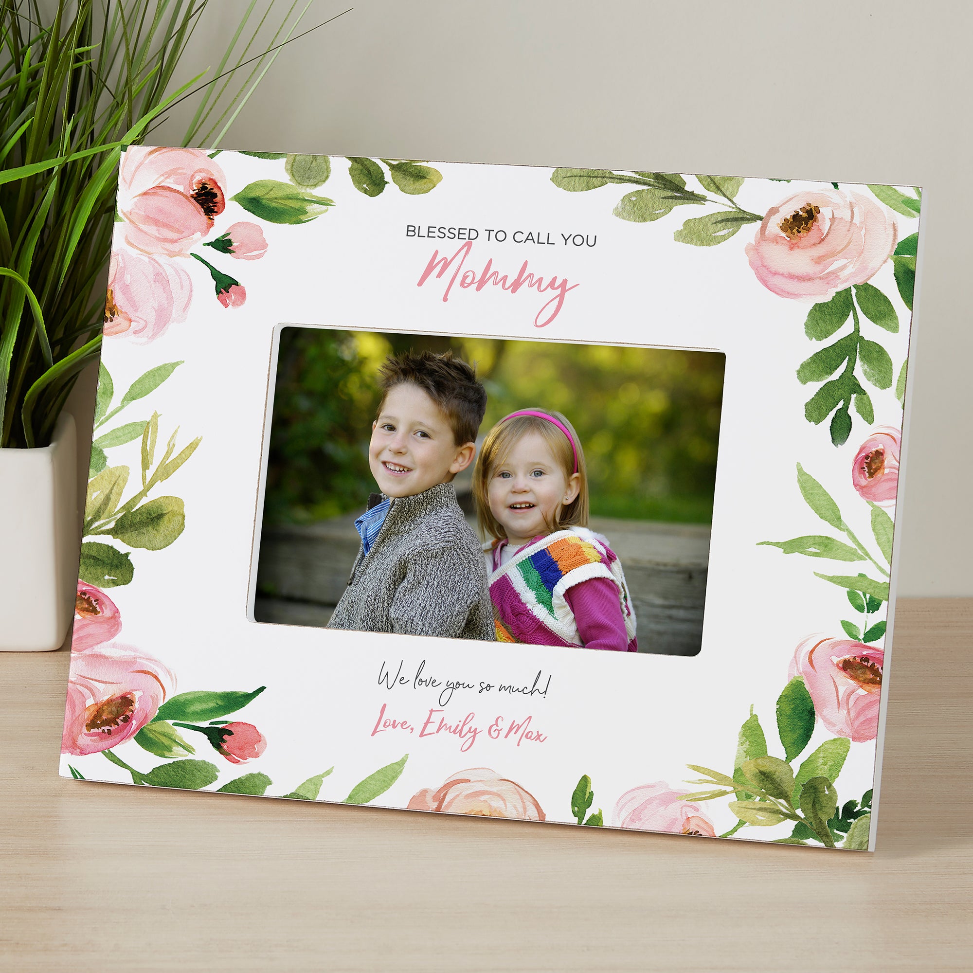 The Blessed To Call You...Personalized Box Picture Frame makes a beautiful display for those you love most. The watercolor floral design makes this a perfect decor piece for any shelf or to hang on the wall!