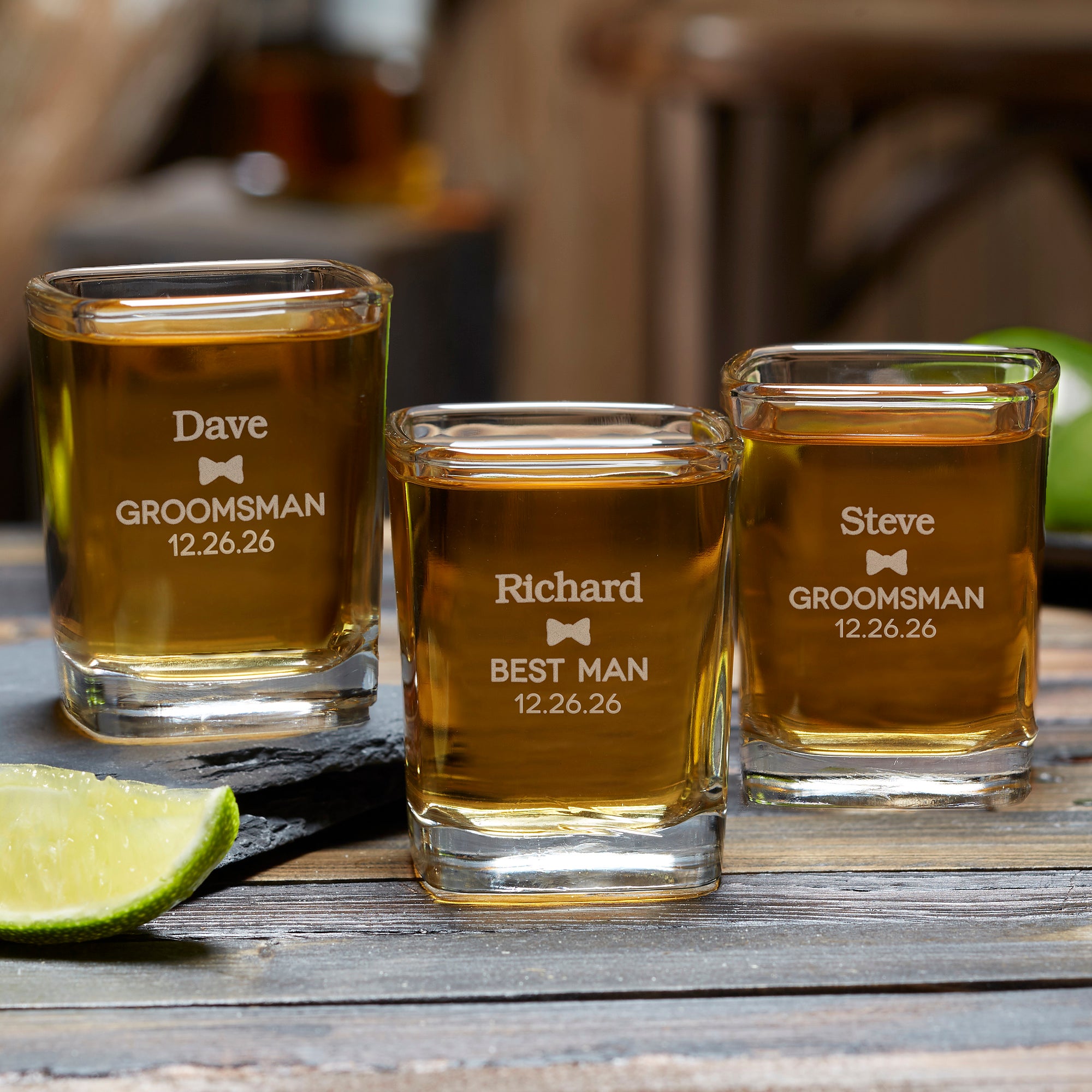 Celebrate the big day and future get-togethers with our exclusive Groomsman Personalized Shot Glass - a gift all the guys and gals in the wedding party will enjoy!