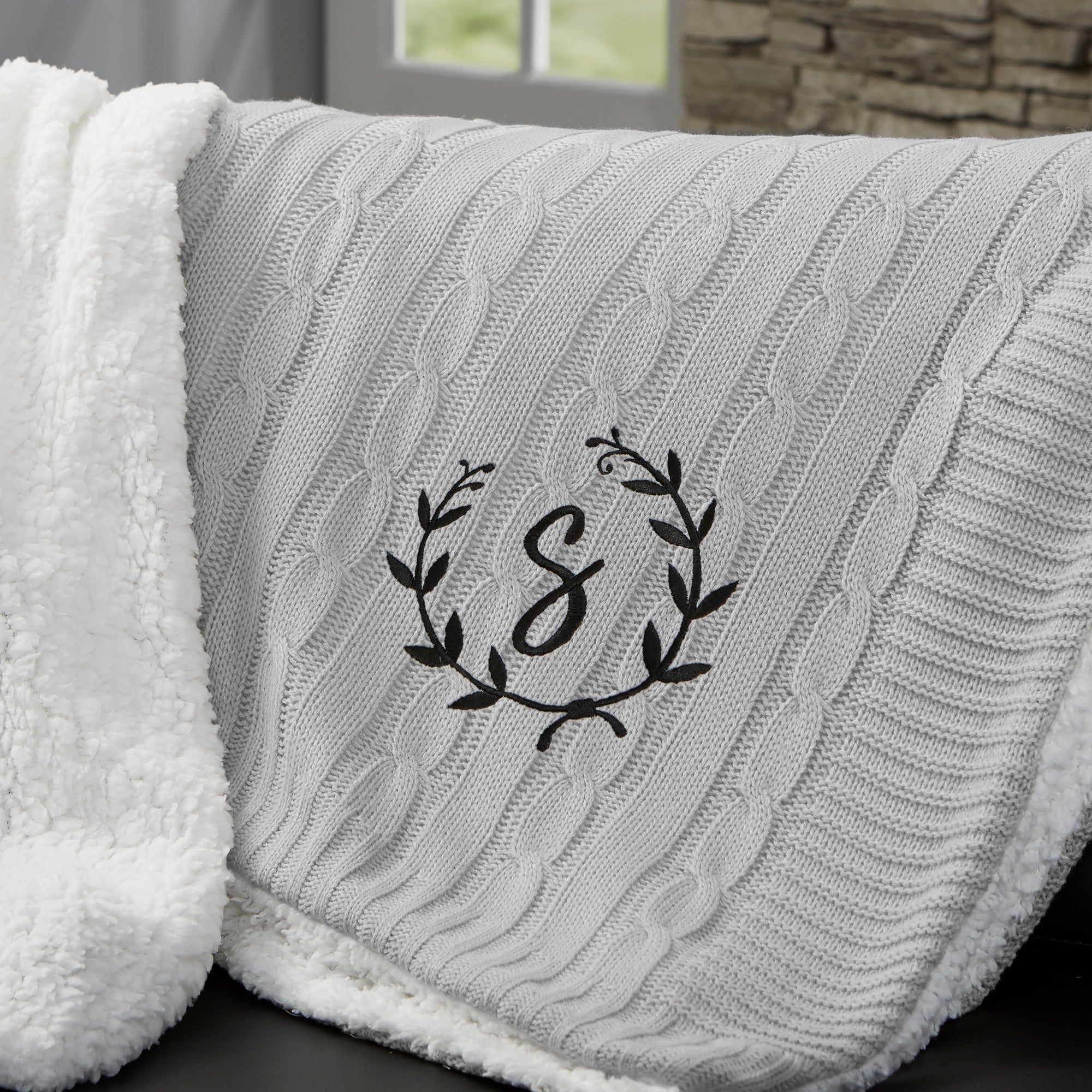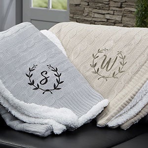 Our Floral Wreath Personalized Throw Blanket has an incredibly, soft knitted sweater pattern on the front and an added bonus of sherpa on the reverse side. Medium weight that's not too heavy or too light makes it a cozy addition to your couch or sofa on a chilly evening.