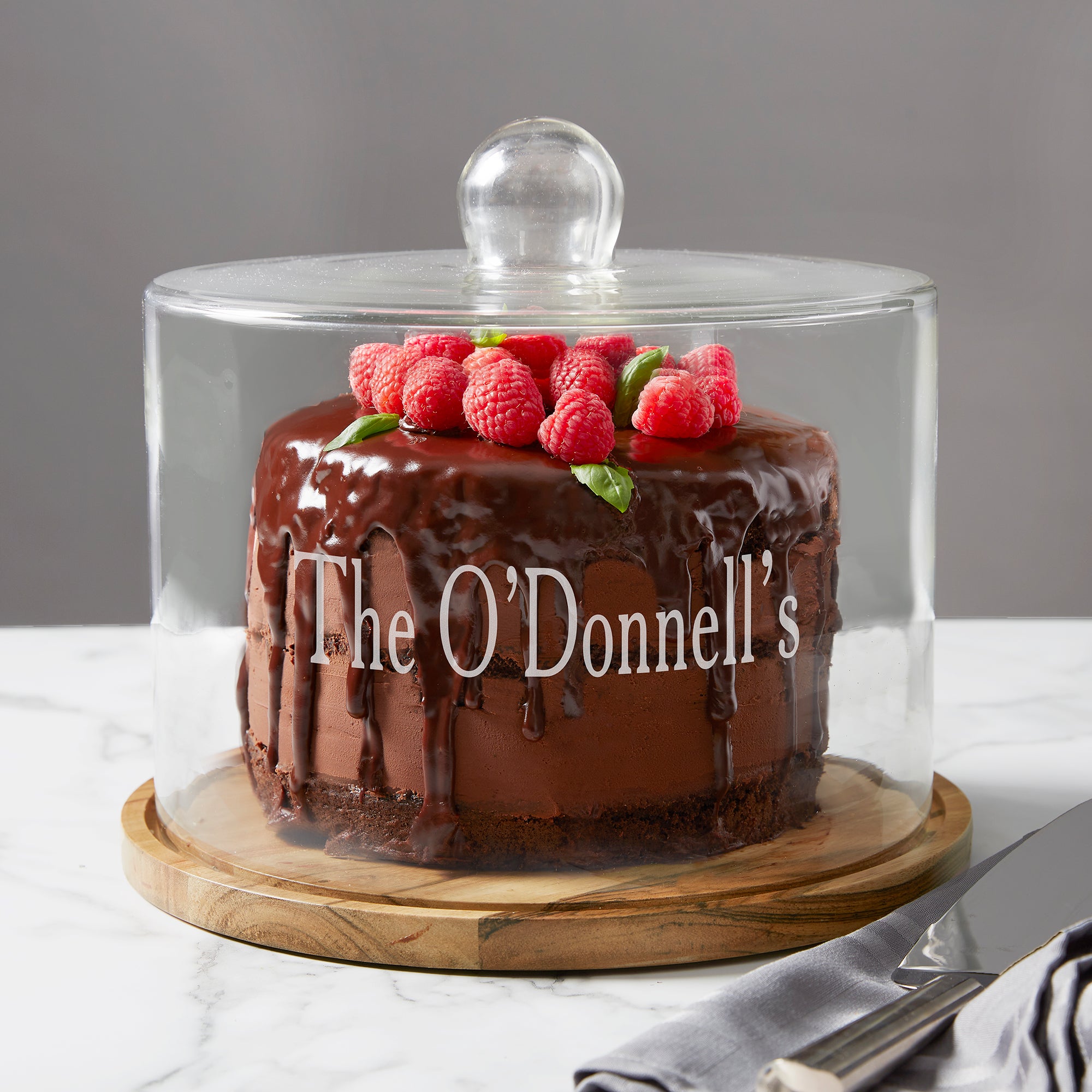 Brisbane Collection Personalized Cake Dome with Acacia Wood Base