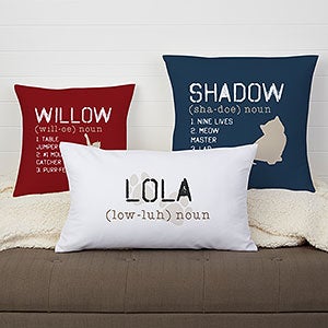 Display with pride what your cat means to you on our Definition of My Cat Personalized Pillow.