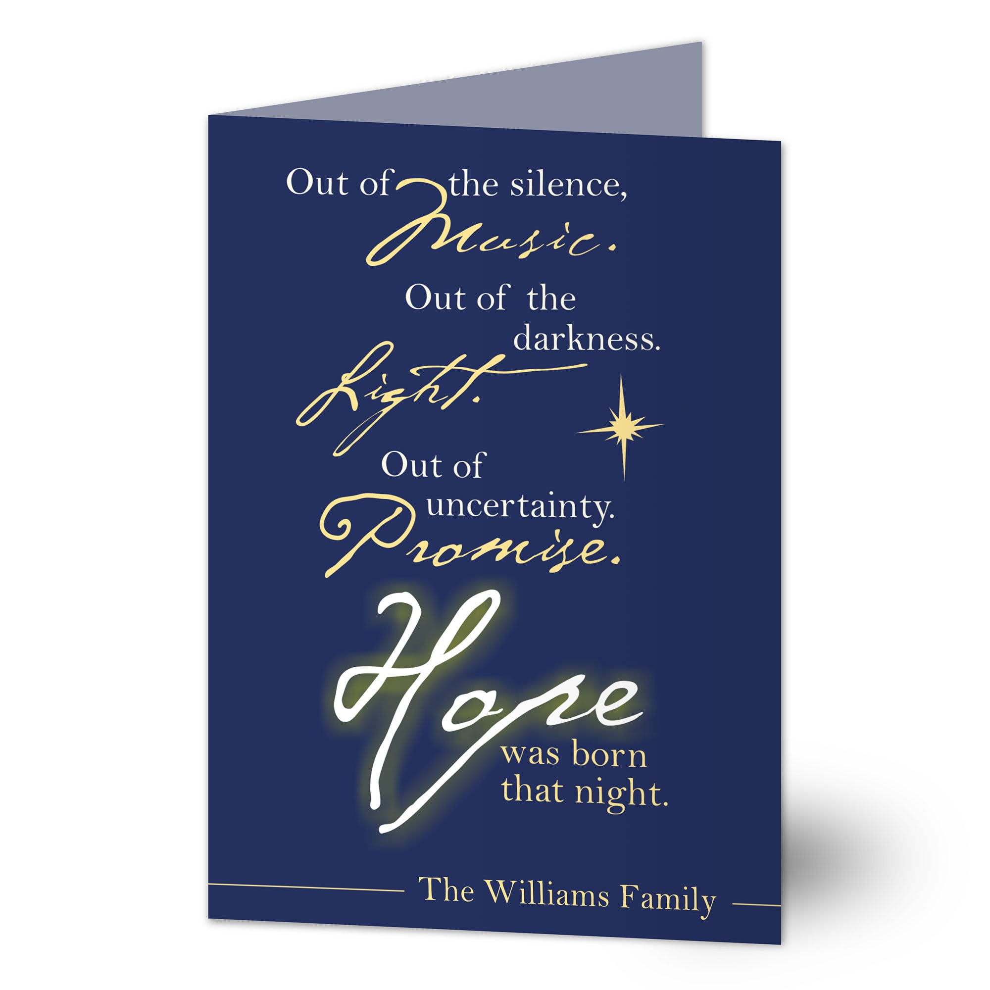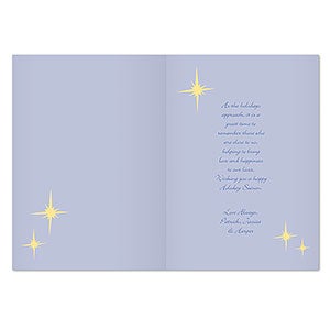 Spread holiday cheer this Season by sending customized wishes to your friends and family with this religious design that is sure to warm the recipients heart.