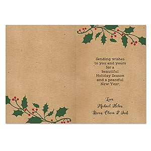 Spread holiday cheer this Season by sending customized wishes to your friends and family with this simple, festive design that is sure to warm the recipients heart.