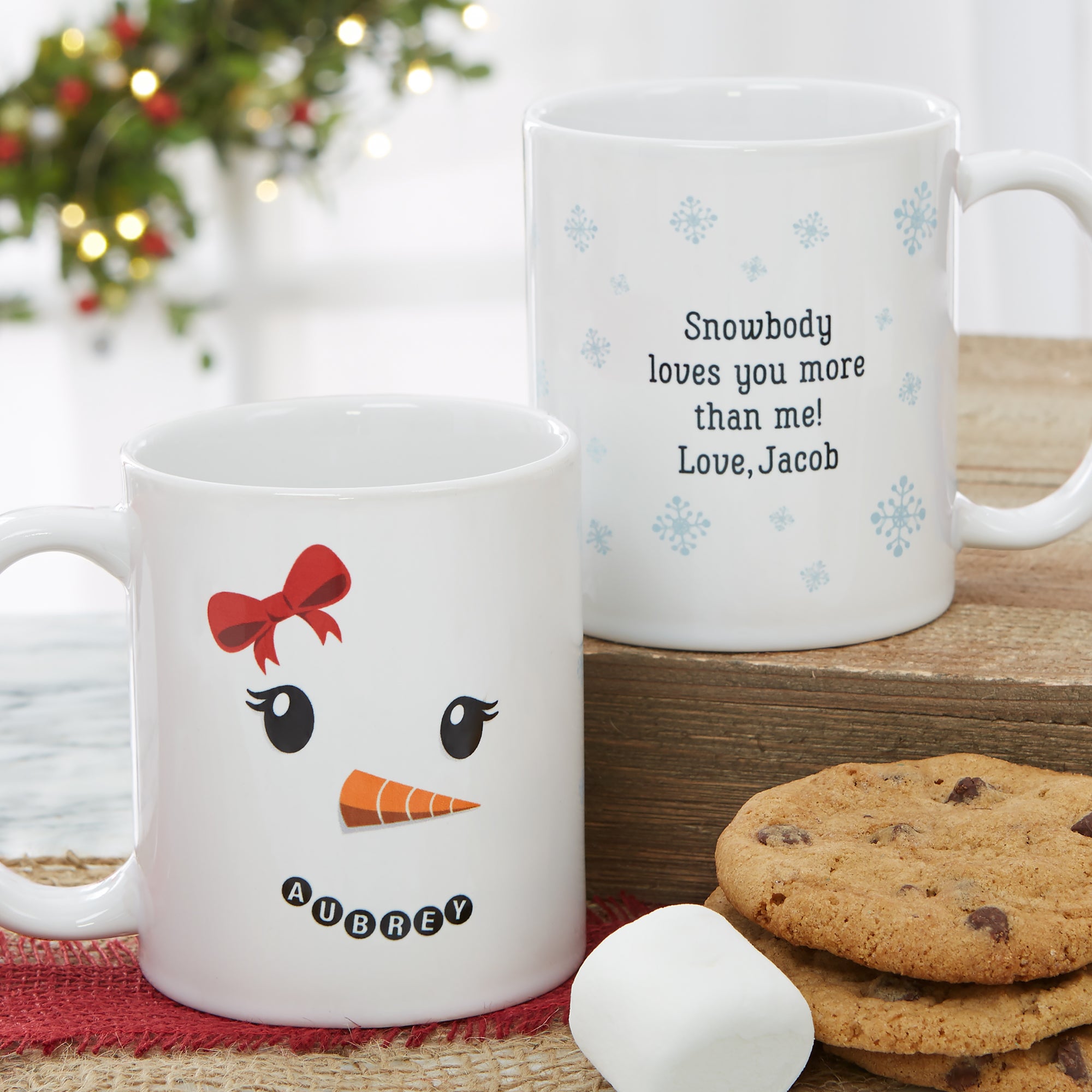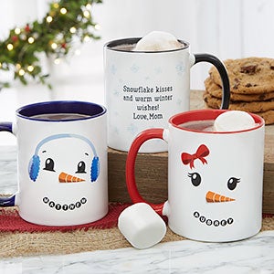 Celebrate all the wonderful people you call family with our exclusive Snowman Character Personalized Christmas Mugs! Our custom coffee mugs are perfect for the holidays and all winter long!
