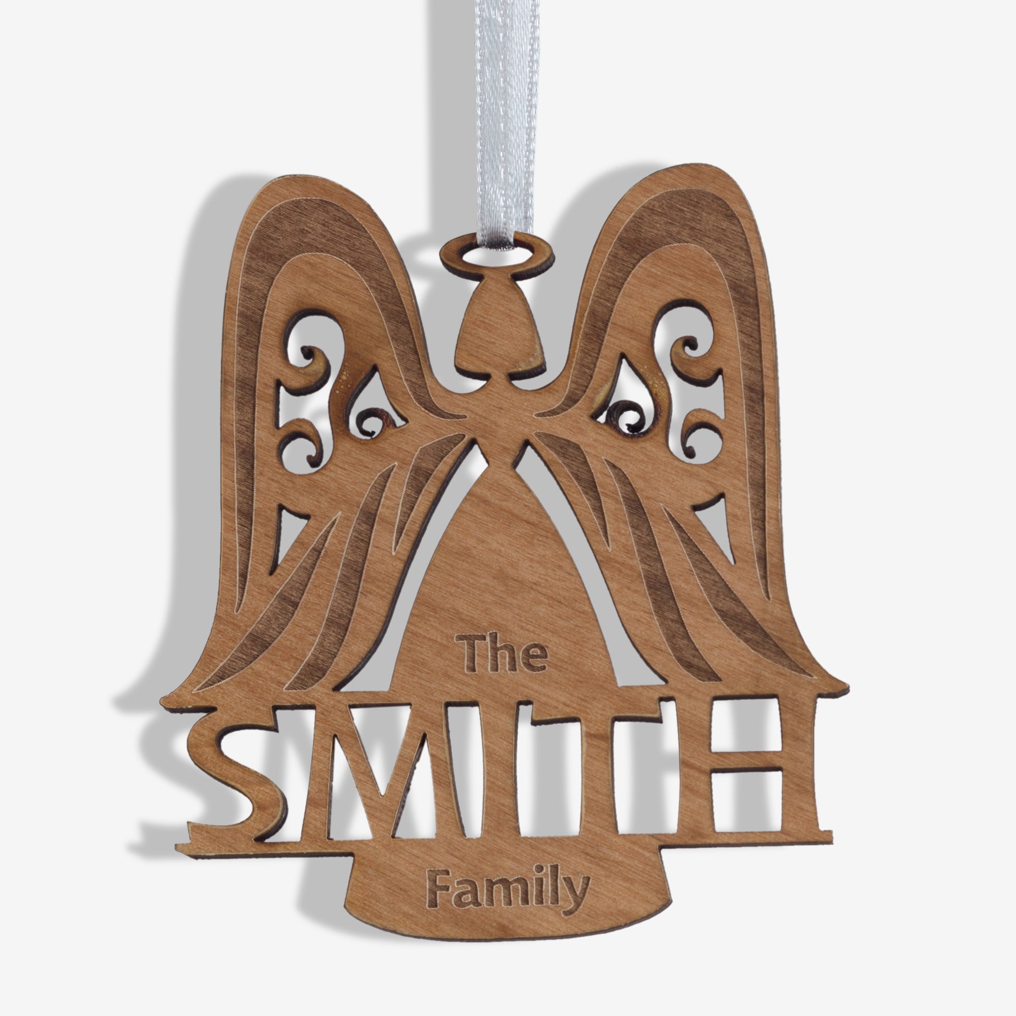 Your family name creates the centerpiece in our beautiful Family Angel Personalized Wood Ornament, exclusively designed for that one-of-a-kind family to enjoy this Christmas and for years to come!