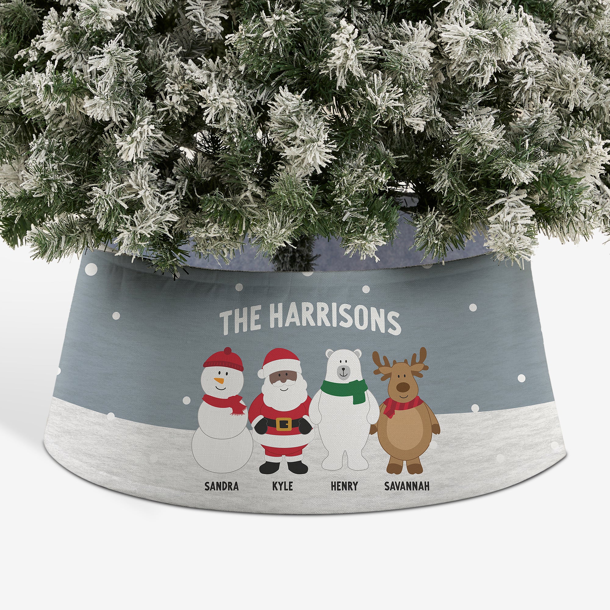 Our Santa and Friends Personalized Christmas Tree Collar adds the festive finishing touch to your tree. A cute design keeps your tree stand neatly under wraps, creating a perfect backdrop for any gifts.