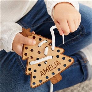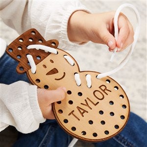 Give the little one in your life our festive and fun Christmas Personalized Wooden Lacing Toy! The engaging and educational toy is perfect for developing motor skills and makes for the perfect stocking stuffer!