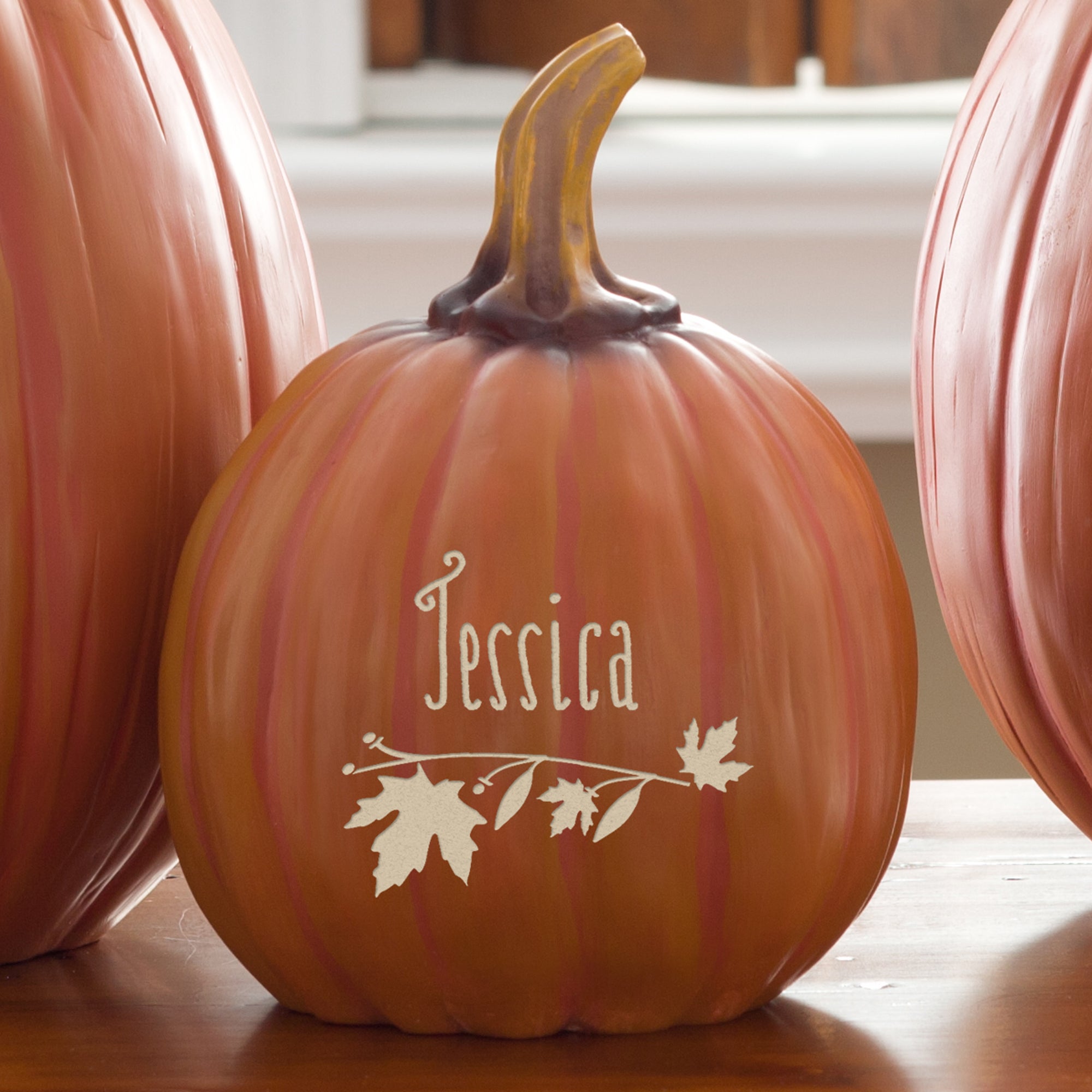 Dress up your home with our bountiful selection of realistic pumpkins, custom made for your family. Our Count Your Blessings Personalized Pumpkin collection is perfect for Fall, Halloween and Thanksgiving!