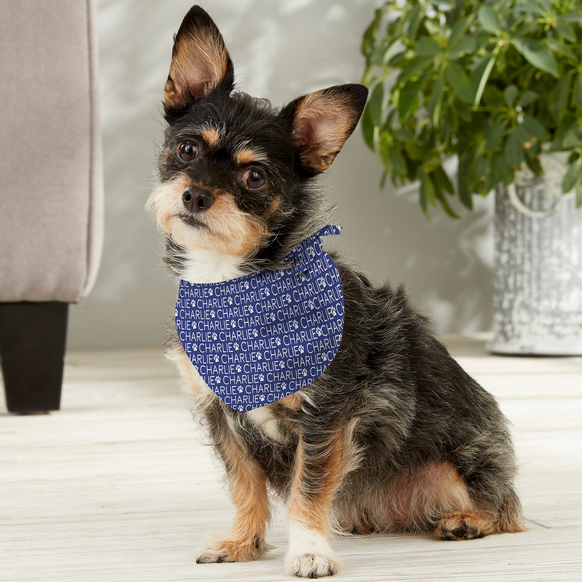 Dress your pet up in designer style with our Pet Repeating Name Personalized Dog Bandana!