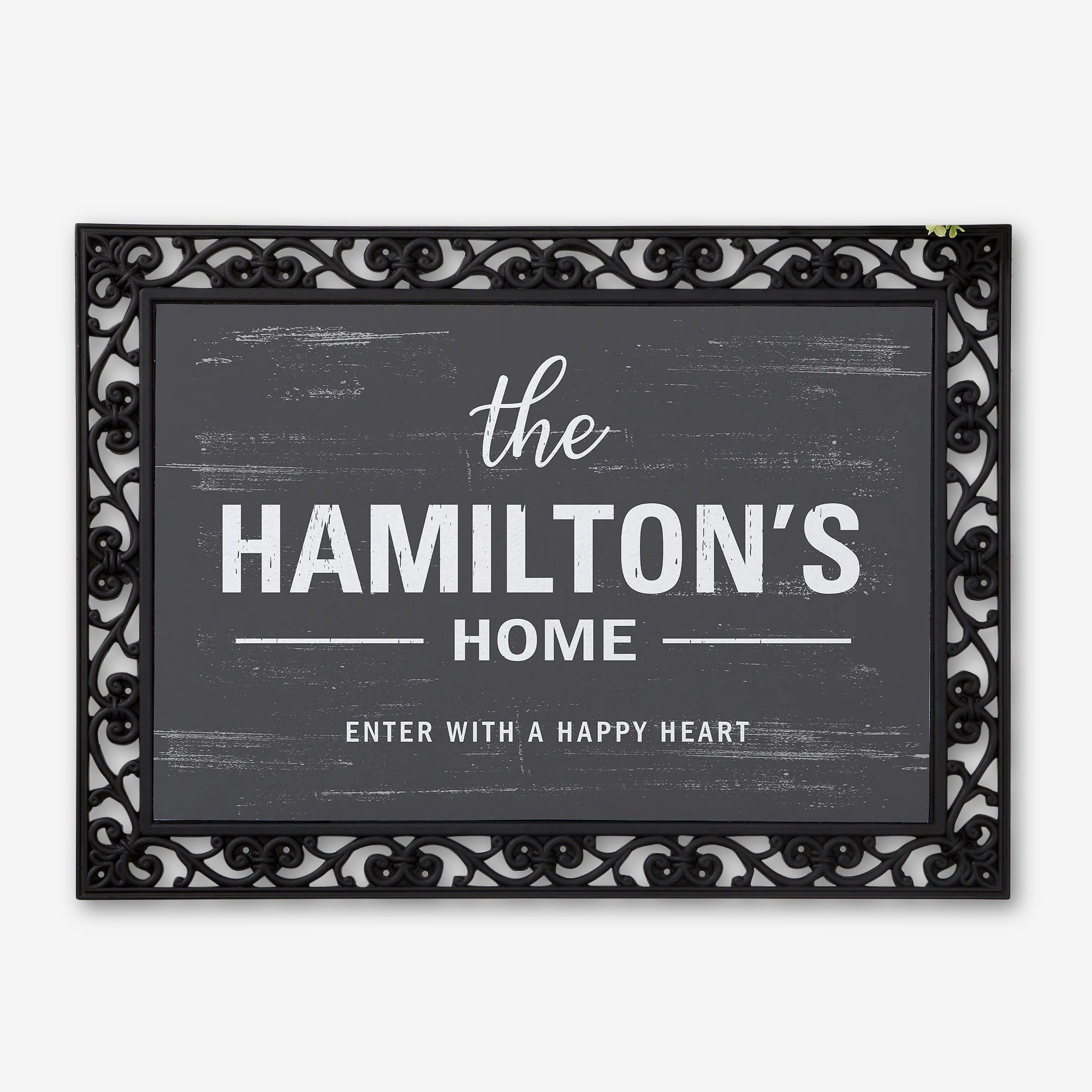 - Personalize this rustic-style mat with any 3 lines of text in your choice of color combination
