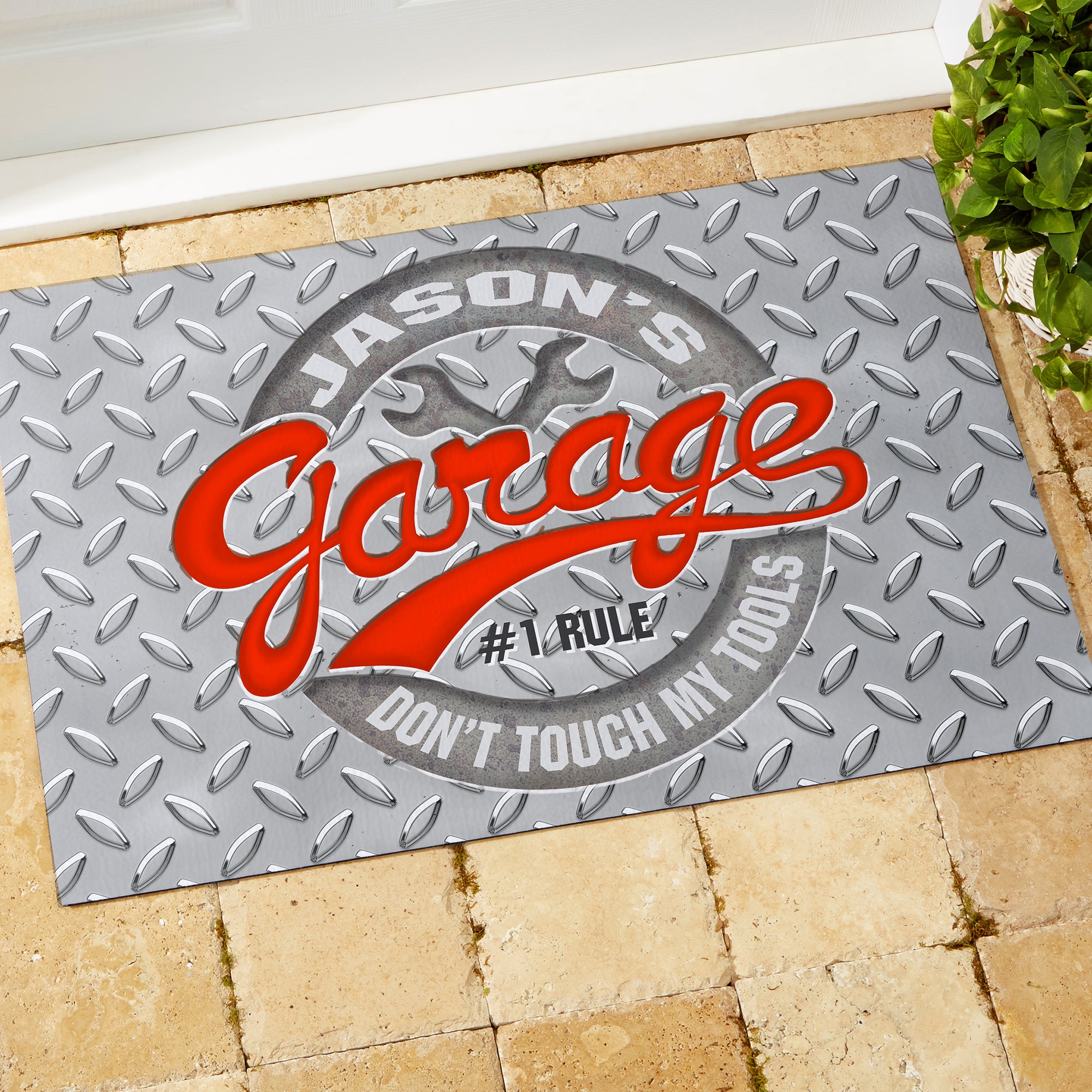 A man's garage is his haven and he'll love to display His Garage Rules Personalized Doormat near his workbench. Perfect for any man who loves his garage!