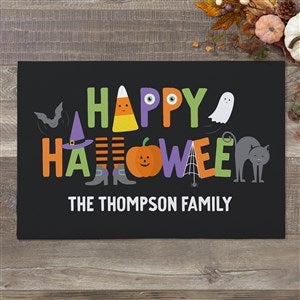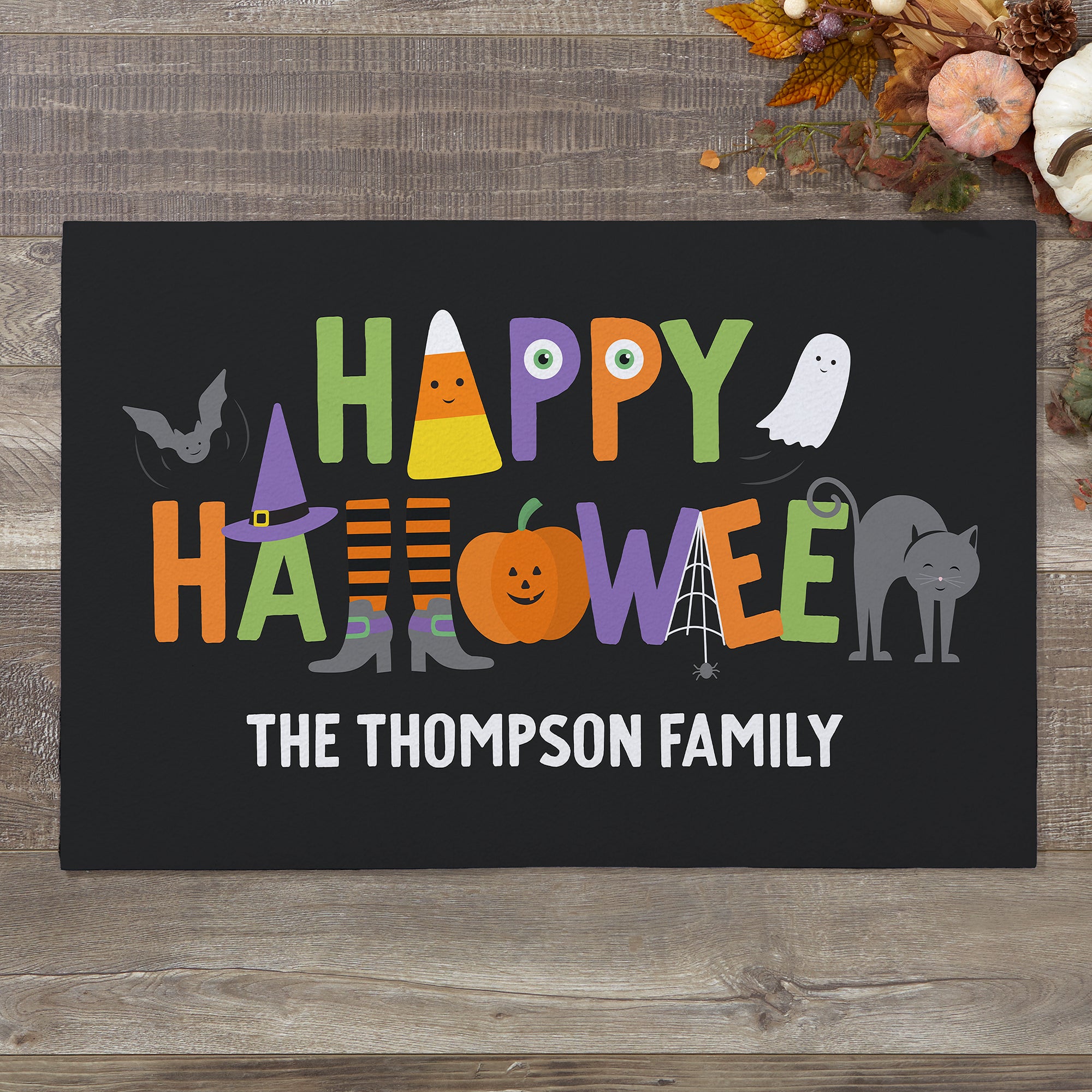 Celebrate Halloween with the Trick or Treat Icons Personalized Doormats. The whimsical doormat makes a festive and fun entrance to your home this Halloween!