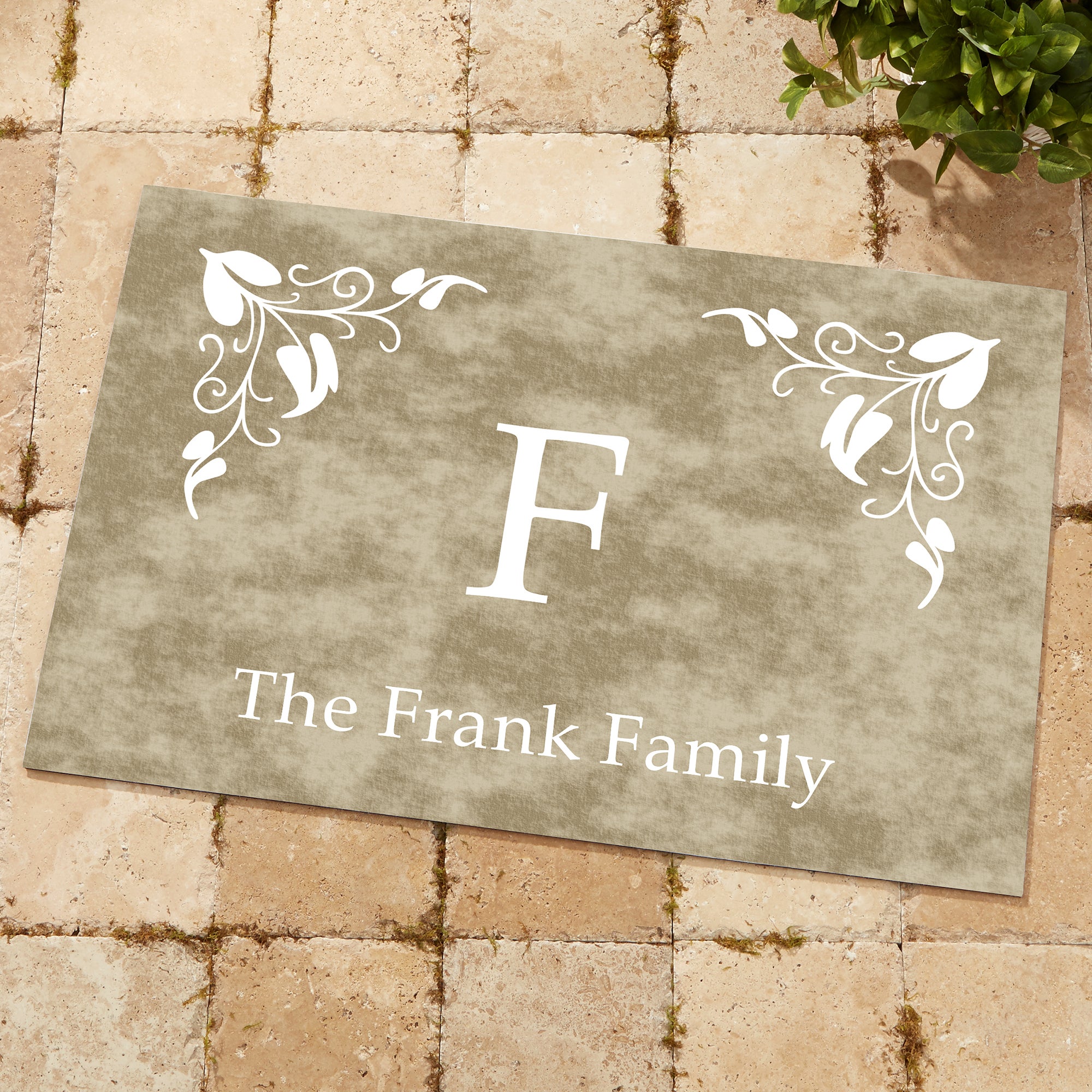 Add a unique, distinctive finish to your front door with our Scroll Leaf Monogram Personalized Doormat! The unique floral accented design, provides a distinctive finish to your home.