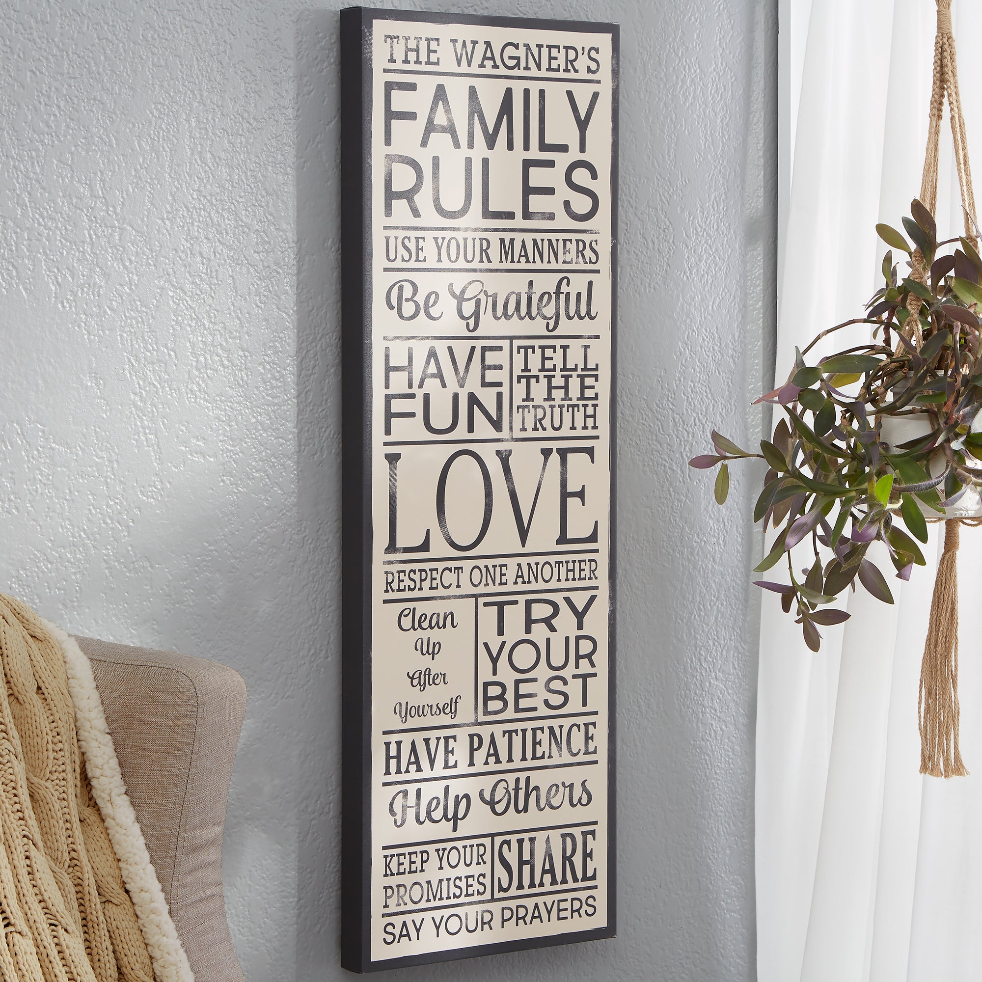 Help your family enjoy a more peaceful and happy home life with our Family Rules Personalized Canvas Art!