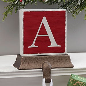Festively decorate your fireplace mantel year after year with our Festive Letter Personalized Stocking Holder. Each stocking holder is heavy enough to support the most abundantly-filled stockings without nails or screws that could damage your mantel.
