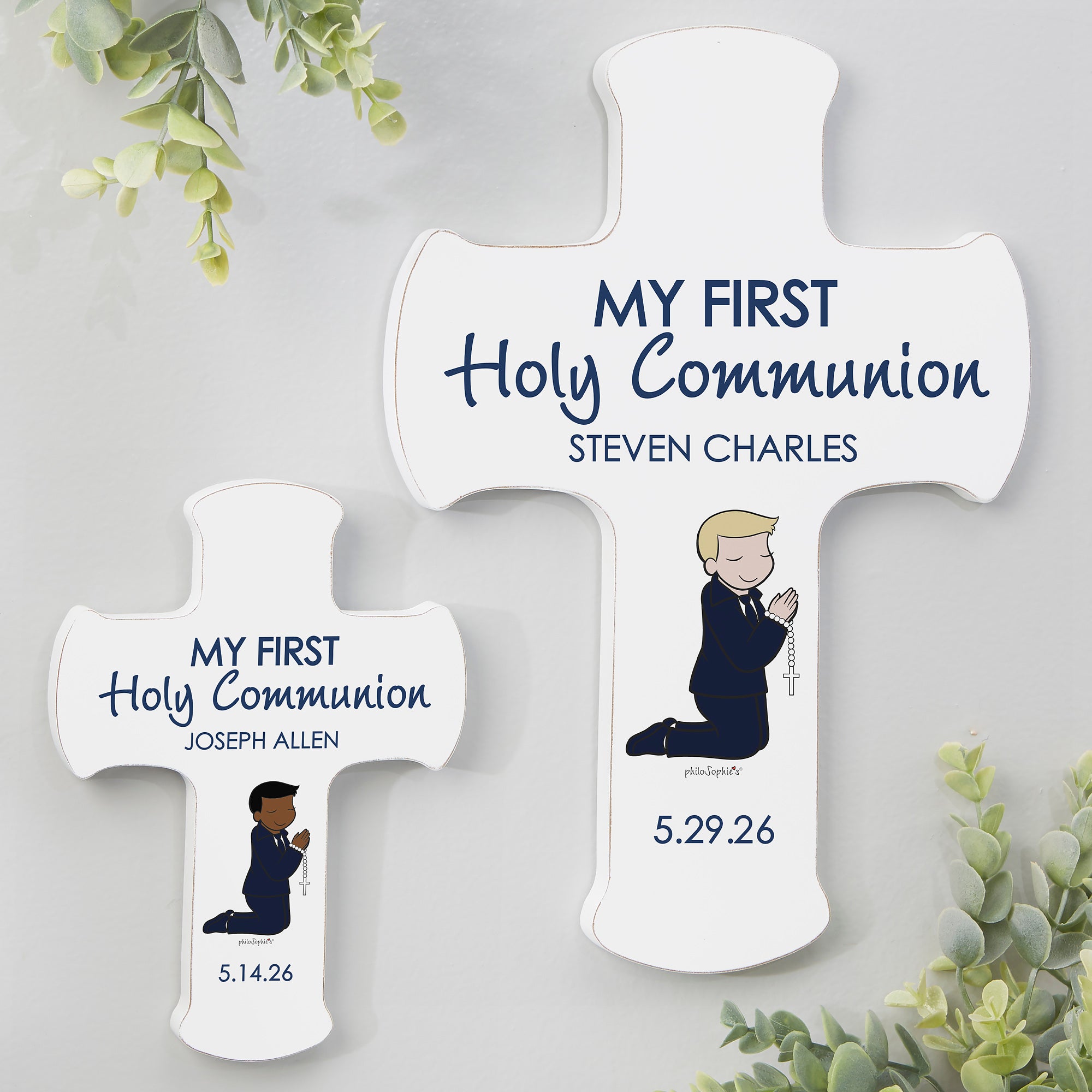 Celebrate their special day with the display of our exclusive Communion Boy philoSophie's® Personalized Cross. This wall cross makes a beautiful keepsake to cherish for years to come.