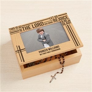 Our exclusive Faith in Prayer Personalized Keepsake Box is perfect for mementos, special photos & keepsakes to fondly remember their special day!