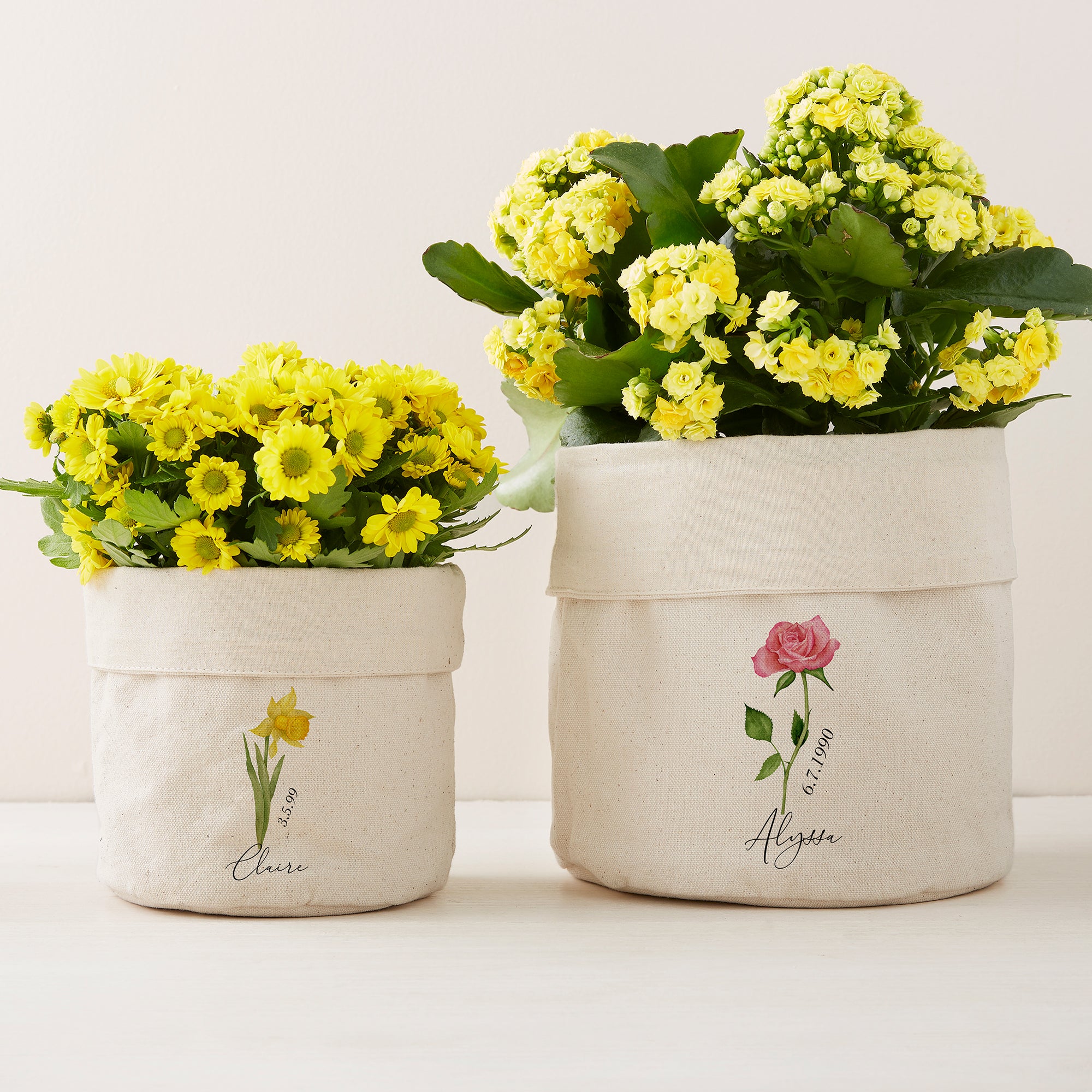 Our beautiful Birth Month Flower Personalized Canvas Flower Planter is a perfect gift for any lady on your list. Add a beautiful plant and give for a birthday or just because.