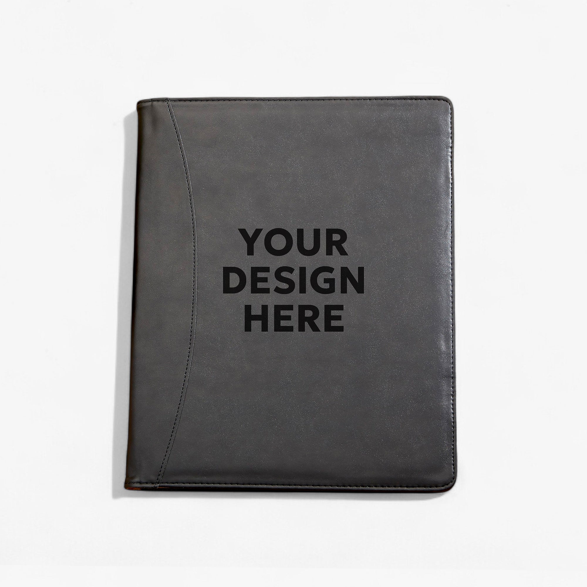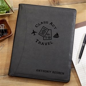 Any customer, client, or employee will love the Personalized Full Size Portfolio - Black. Featuring a side pocket, business card slots, and pen loop, this is the only journal they'll need when meeting with clients or traveling. Custom engraved with any name, logo, and/or text on the front cover.