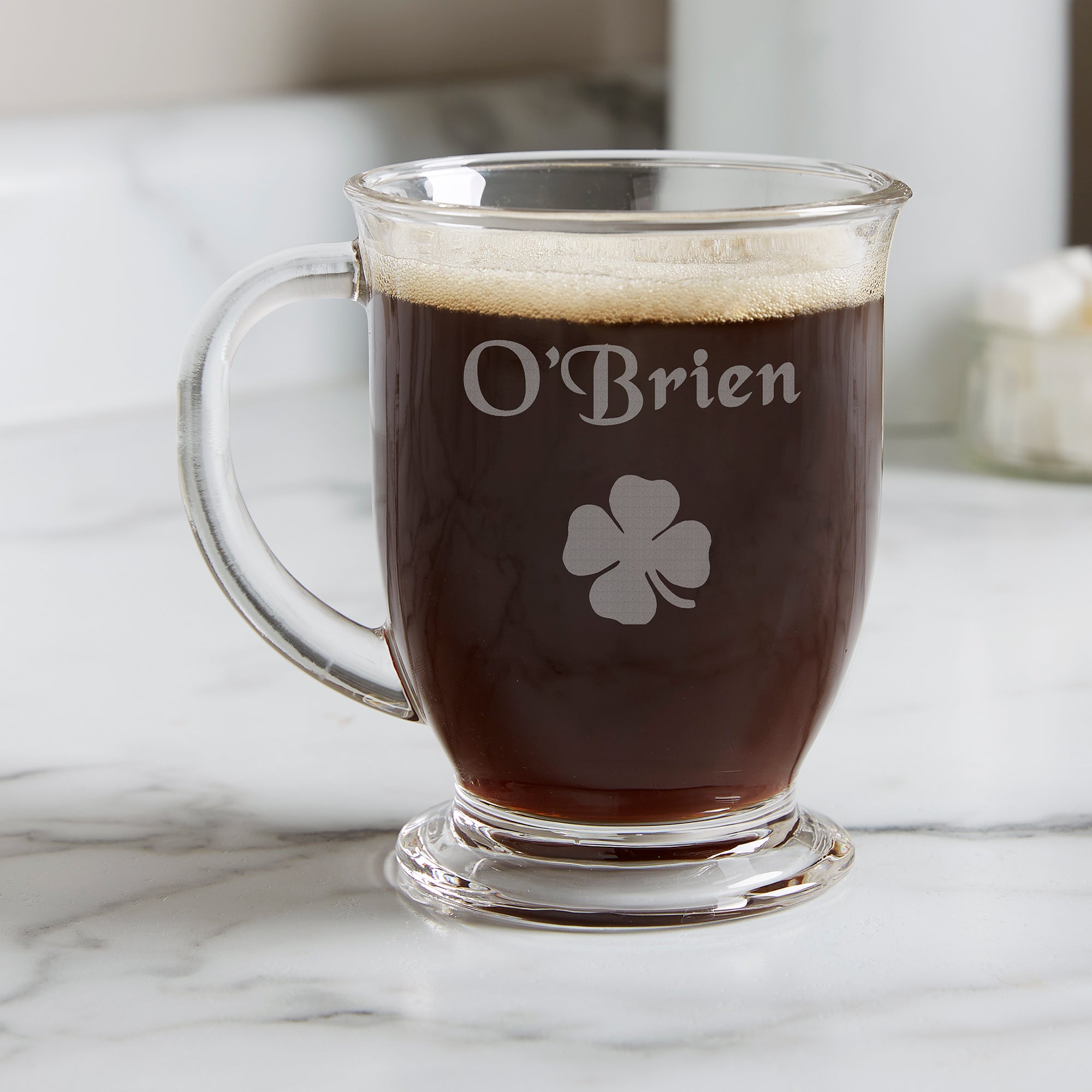 The Irish Coffee Personalized 16 oz. Glass Mug is the perfect mug to use to sip your favorite beverage in style.