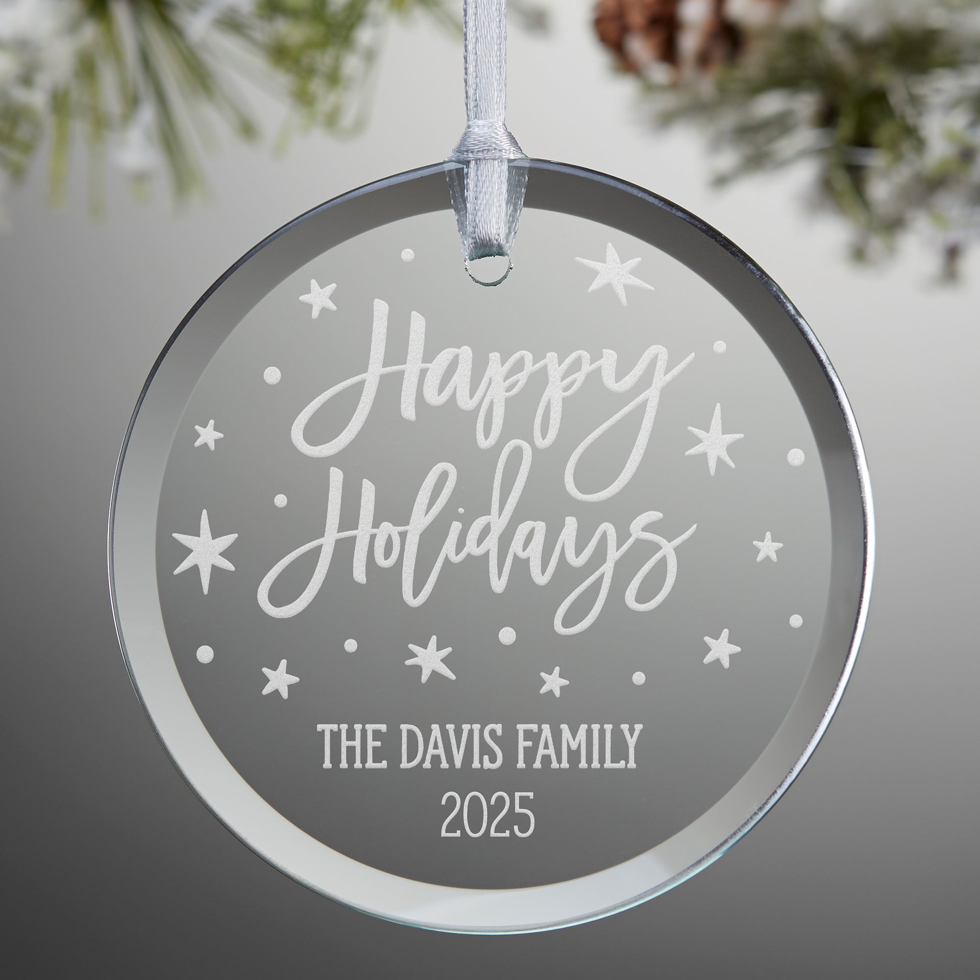 Holiday Greetings Personalized Glass Ornament