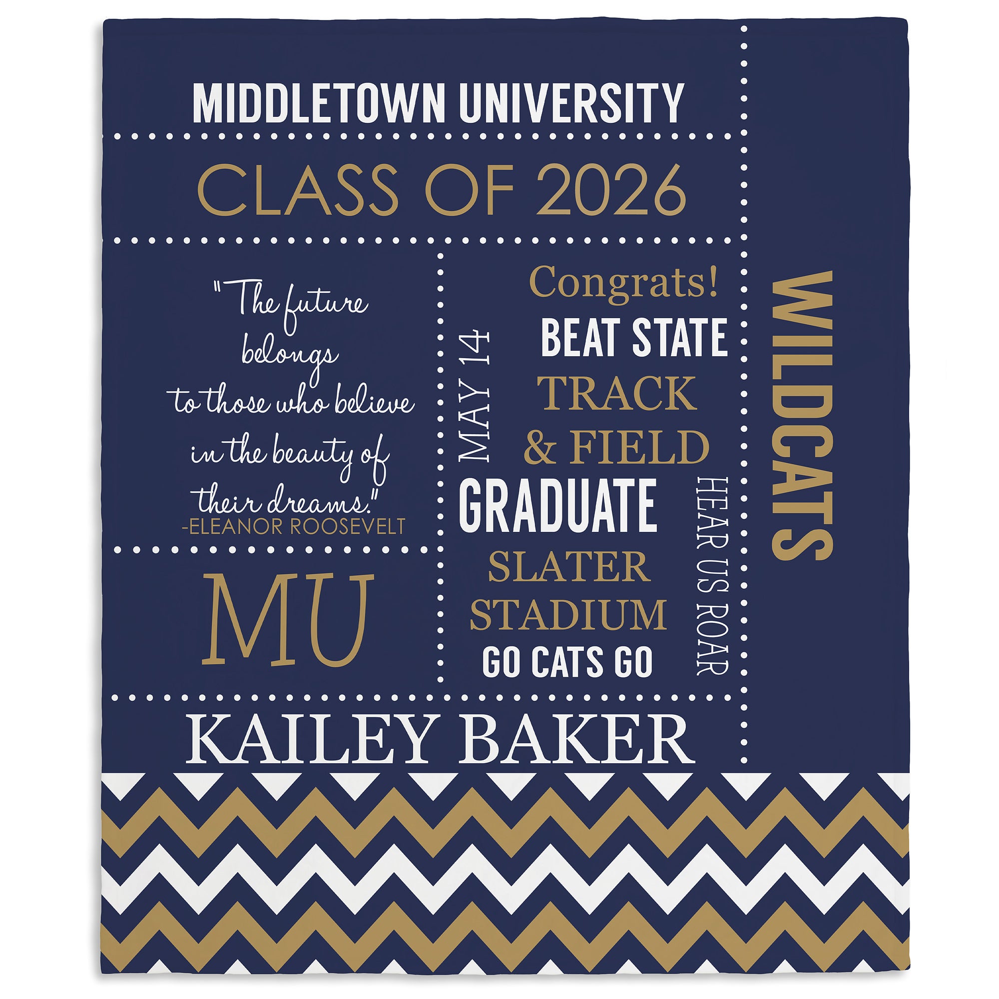 Let them wrap themselves in plush luxury with our School Memories Personalized Graduation Blanket. This blanket makes a great gift for any student, graduate and athlete too.