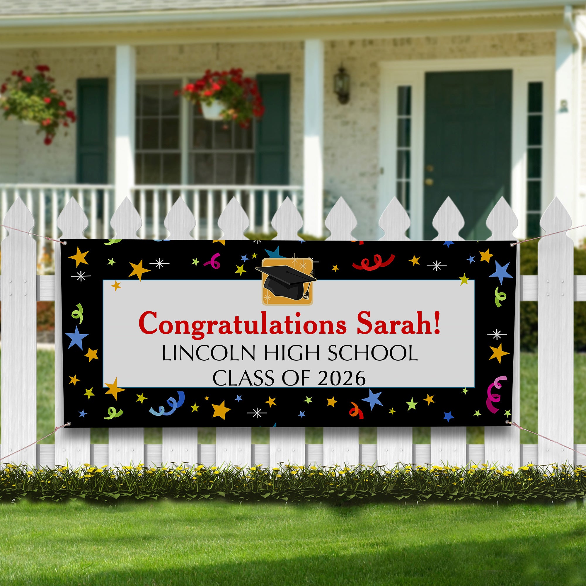 When congratulations are in order, shout it out loud and proud with our Let's Celebrate Personalized Graduation Banner.
