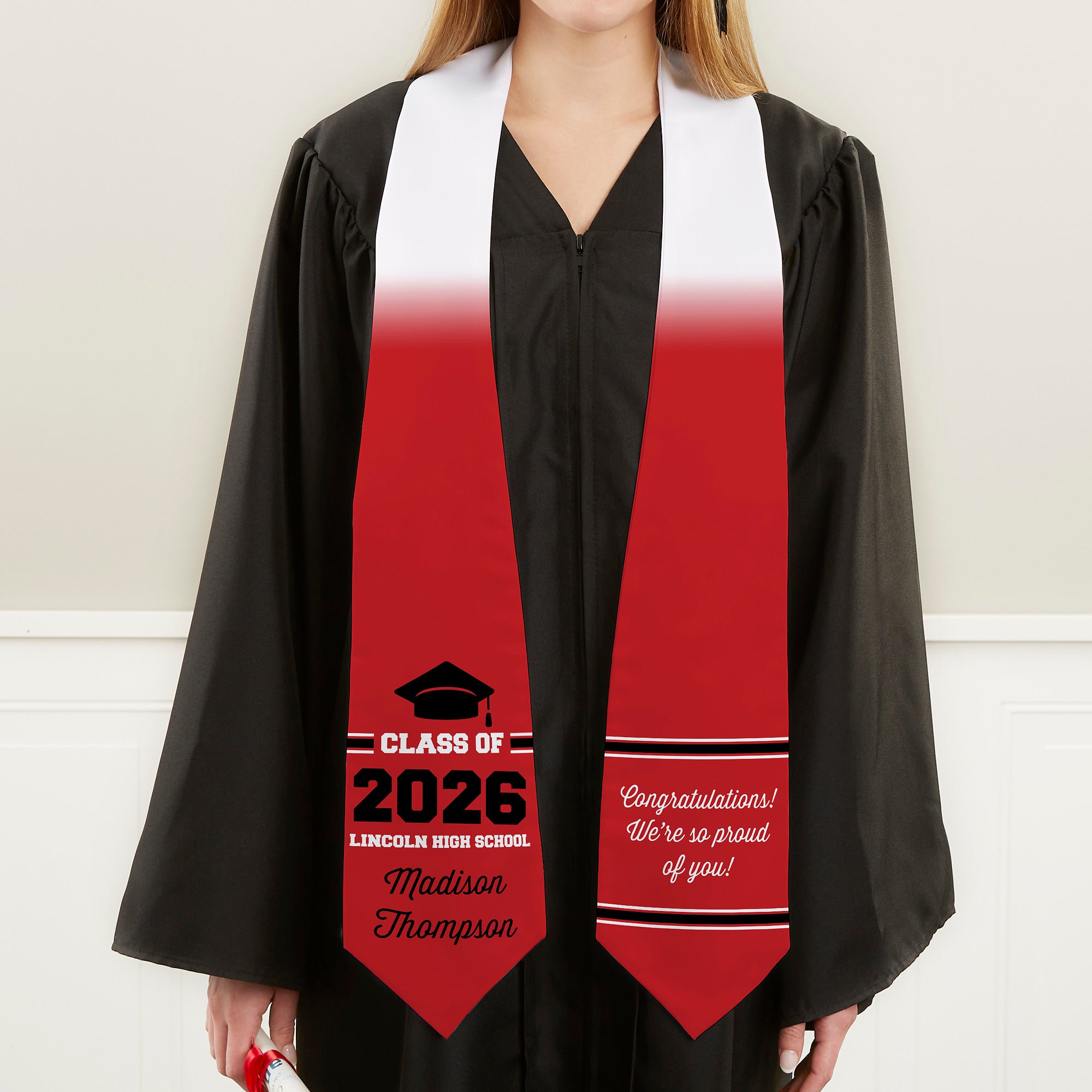 Our Class Of Personalized Graduation Stole is the perfect piece to wear at any high school or college commencement ceremony. The stole also makes for a great keepsake!