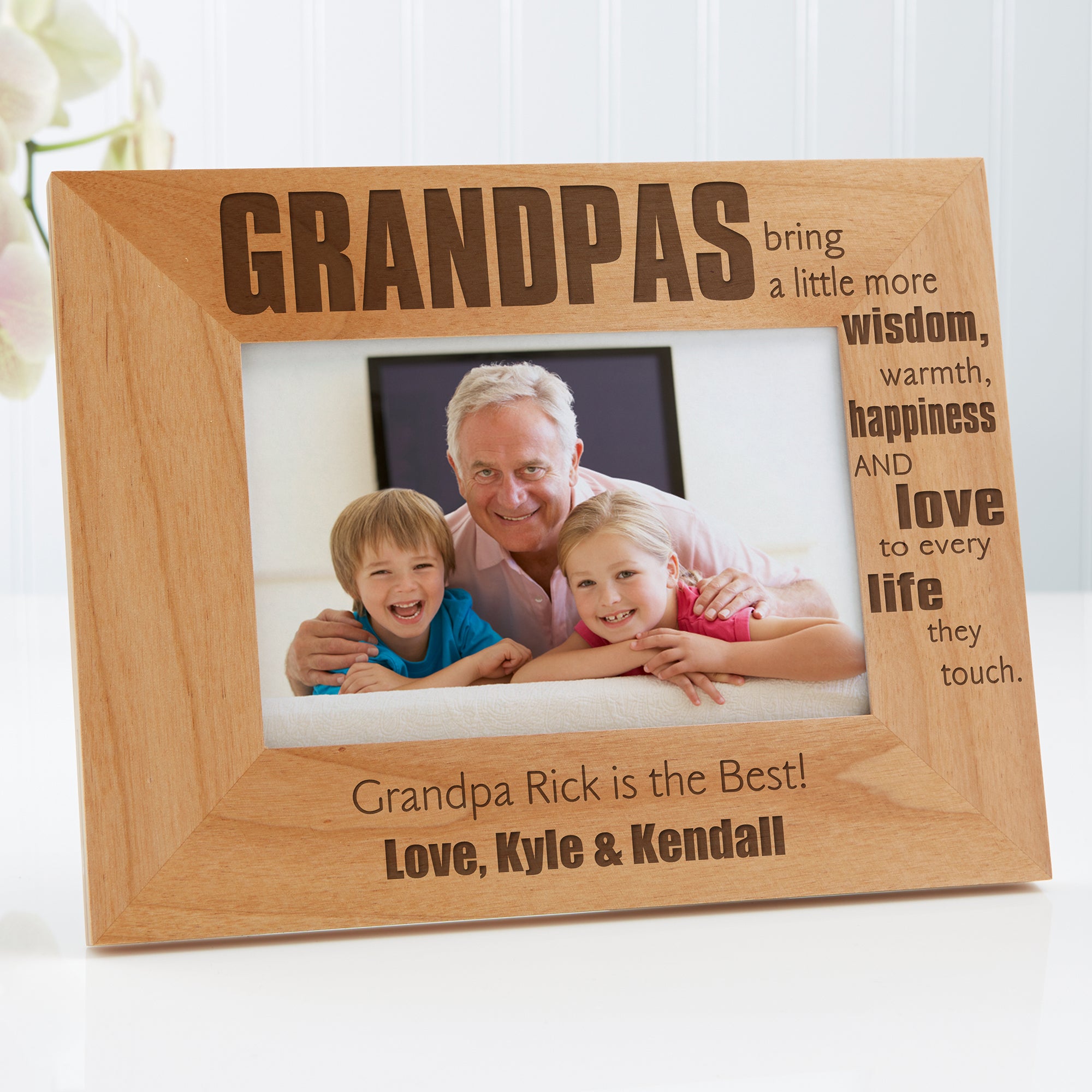 - A verse about grandpa will be engraved across the side of the frame