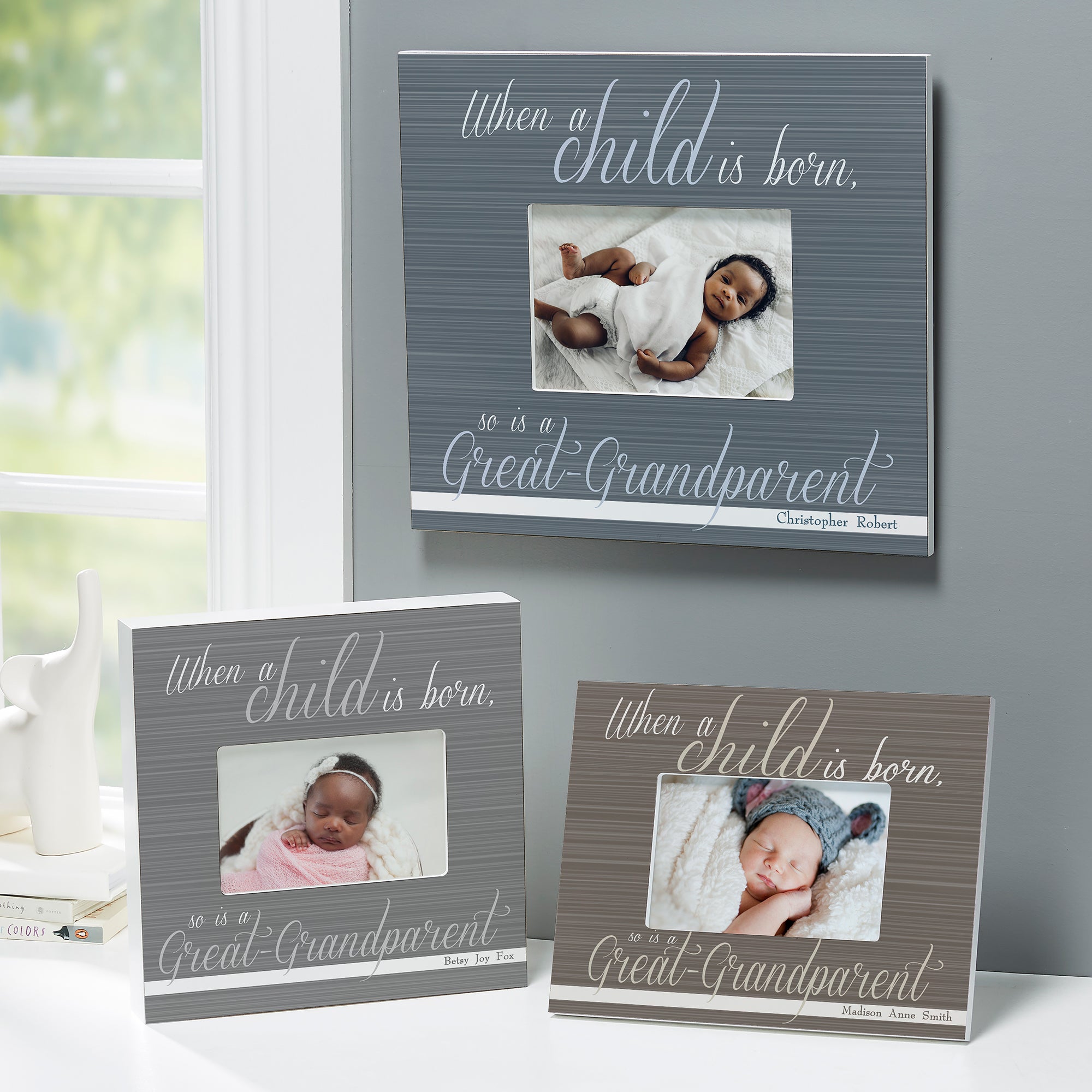 A new arrival brings new joy for great-grandparents whether it is their first great-grand baby or one of many! Let them showcase their precious little one in joyous style with our exclusive A Great-Grandparent Is Born Picture Frame.