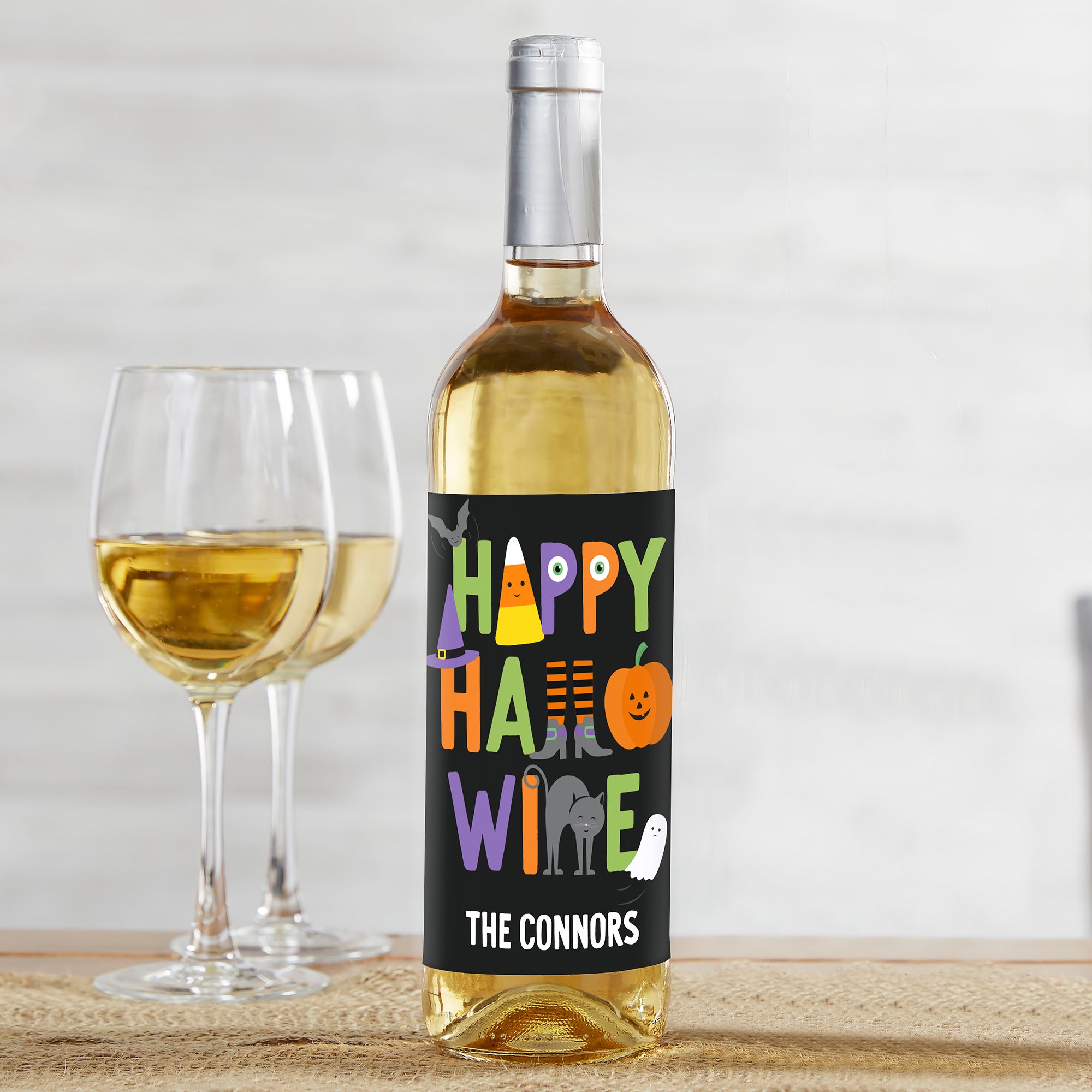 Trick or Treat Icons Personalized Halloween Wine Bottle Label
